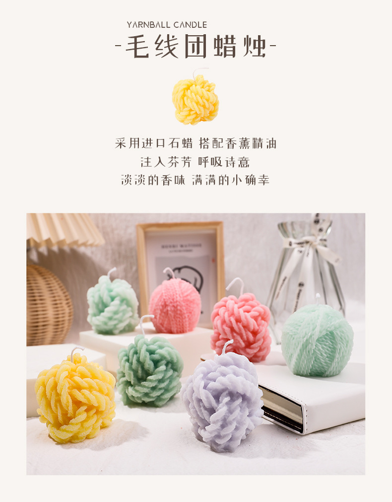 毛线团香薰蜡烛环保石蜡莫迪兰色摆件礼物可爱ins风冬日温暖精油