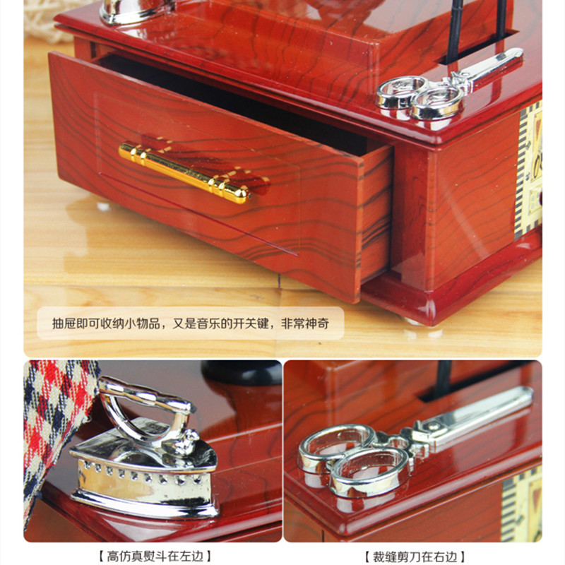 厂家批发仿木质复古新奇特老式手摇缝纫机八音盒创意工艺品音乐盒