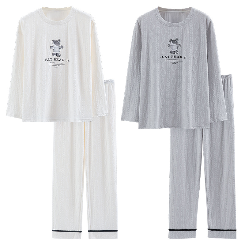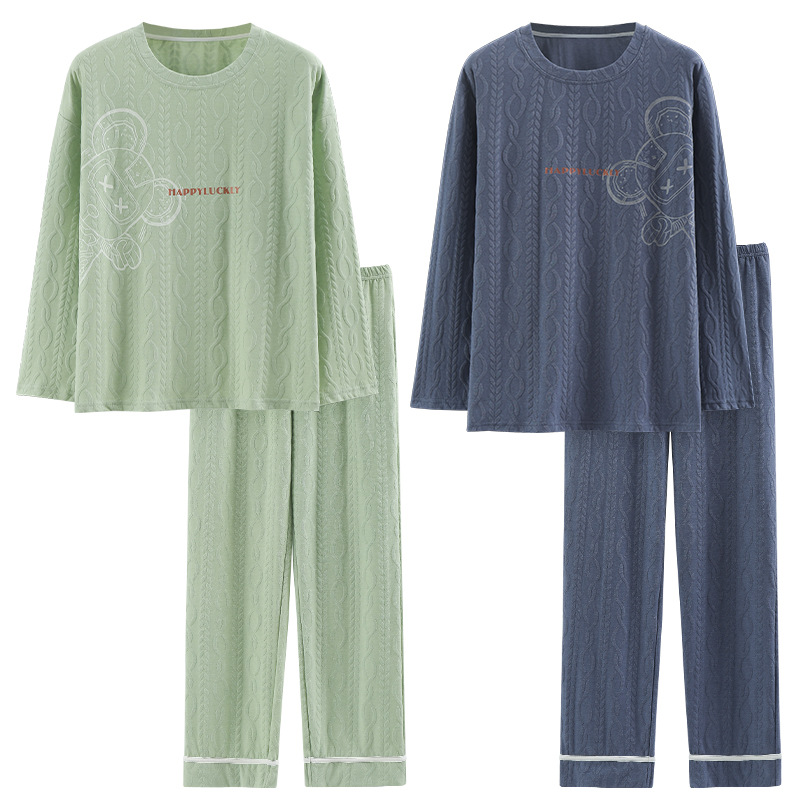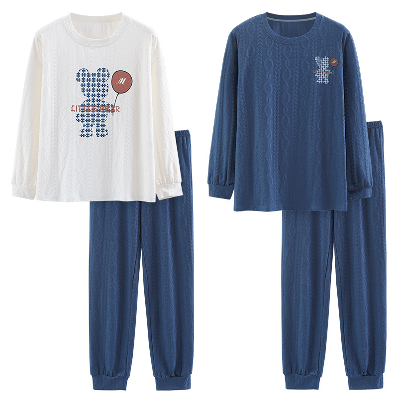 春秋季情侣睡衣长袖长裤套头仿棉提花男女士家居服可爱套装加大码