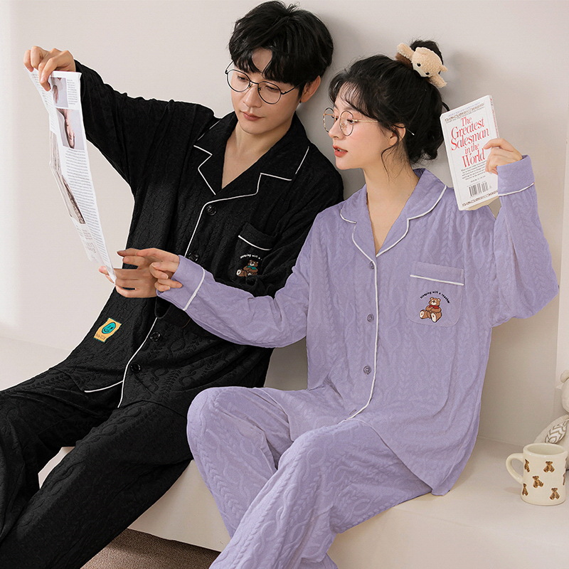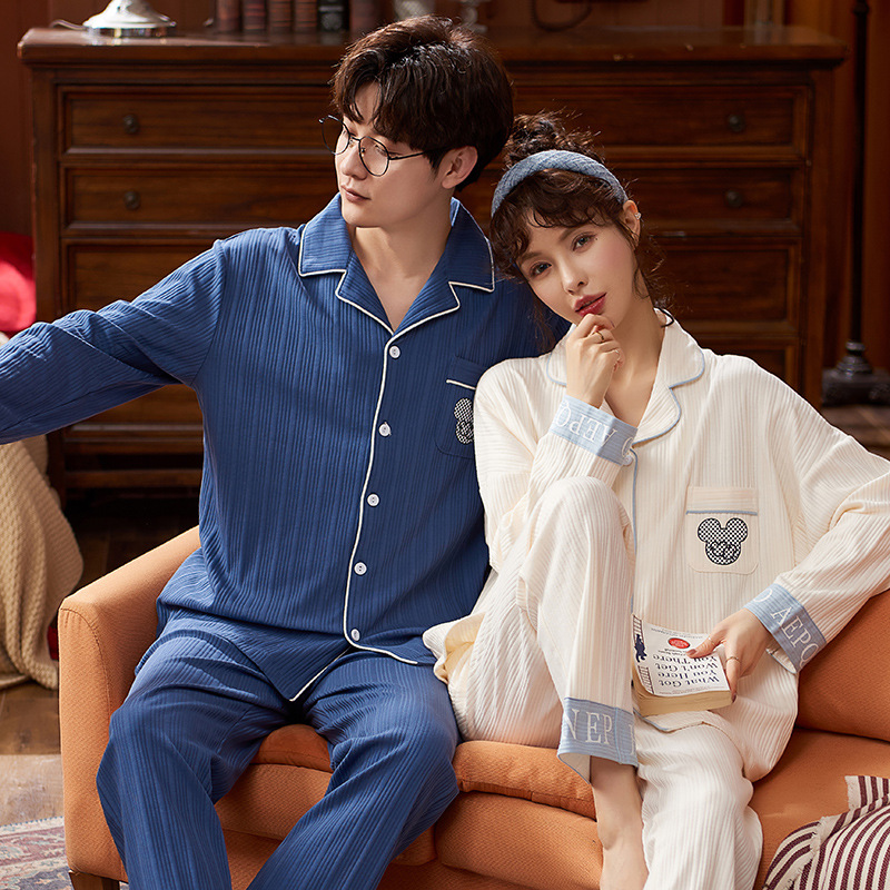 情侣睡衣女秋冬季棉质长袖套装可爱卡通宽松休闲男士加大码家居服