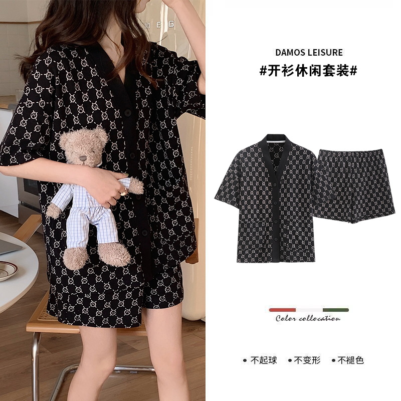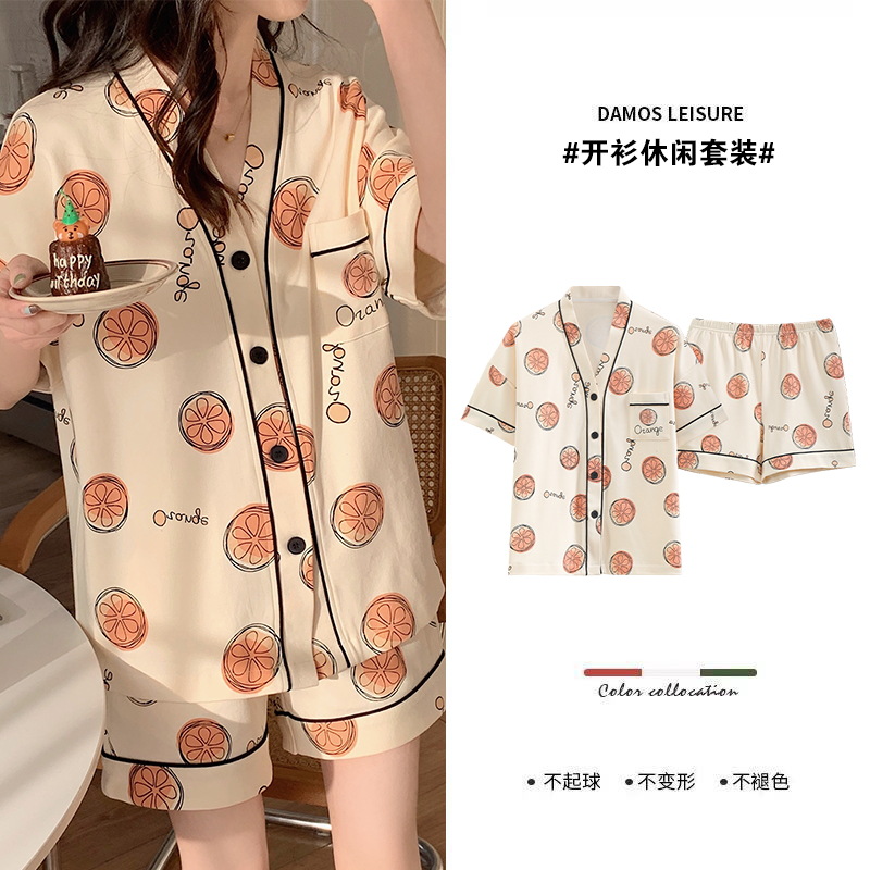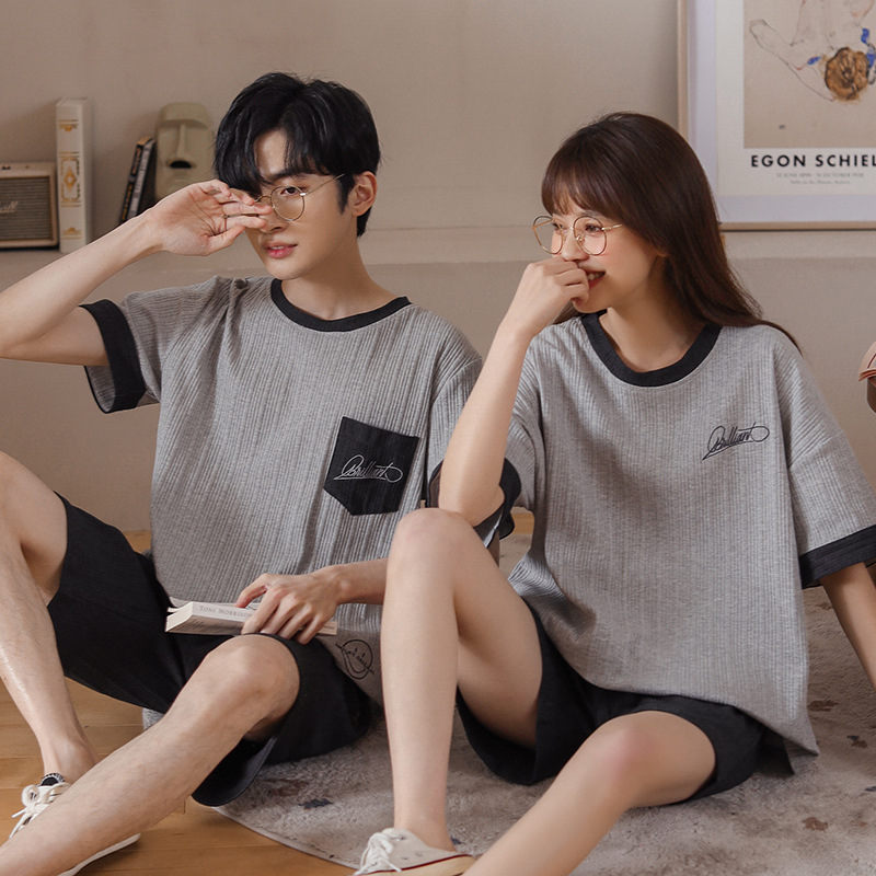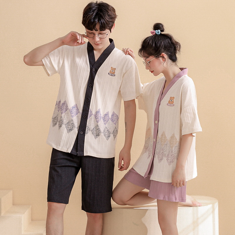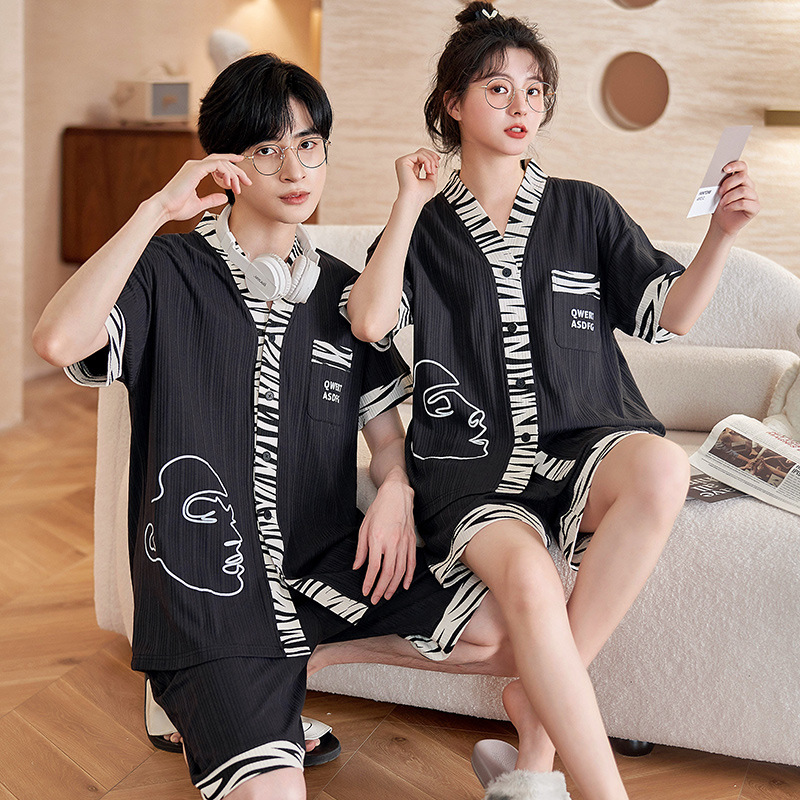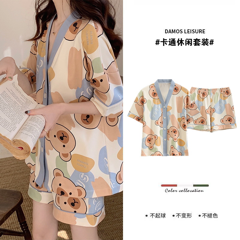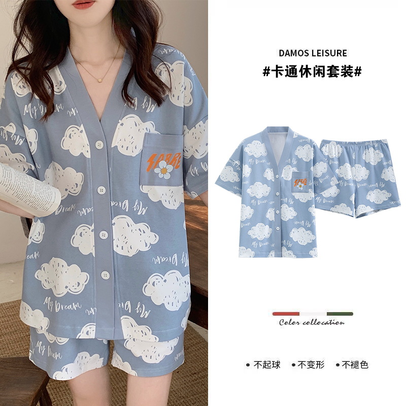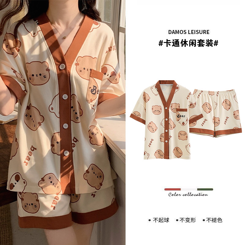 2023新款短袖情侣睡衣女夏季棉质家居服可爱卡通开衫男士大码套装