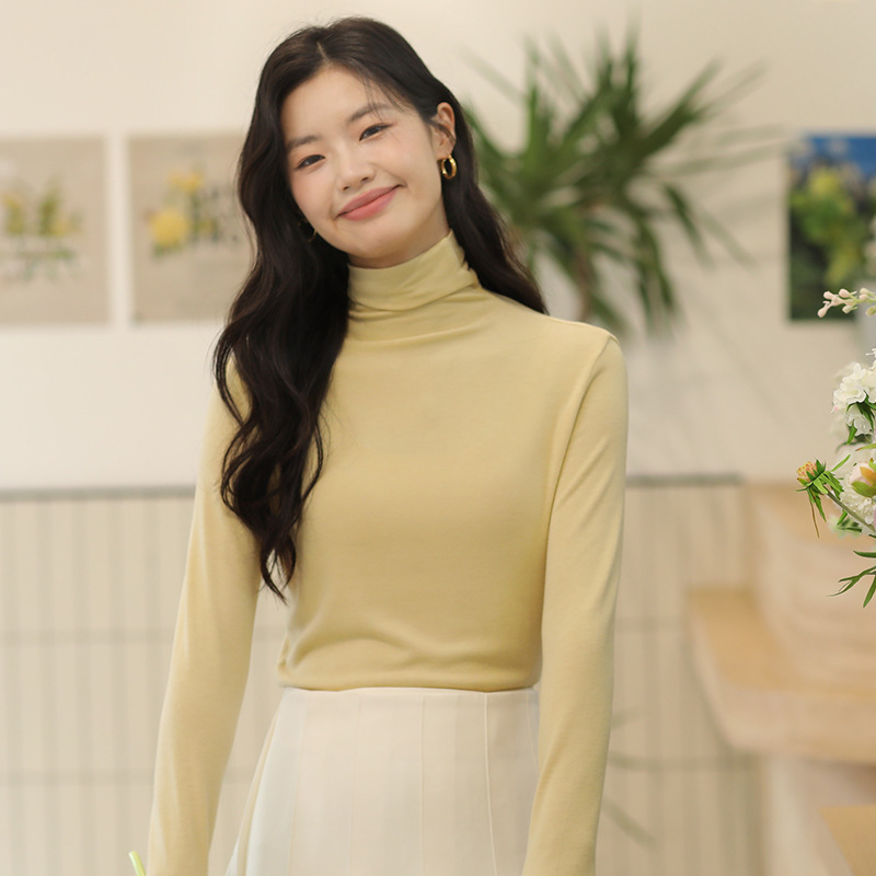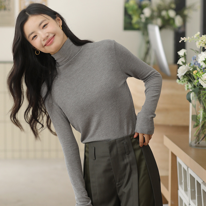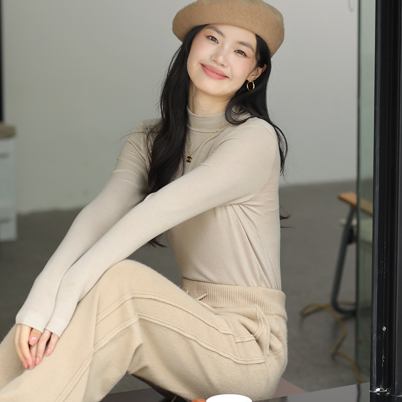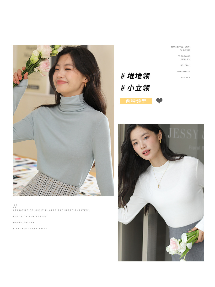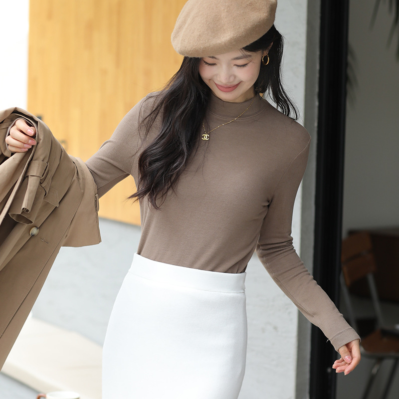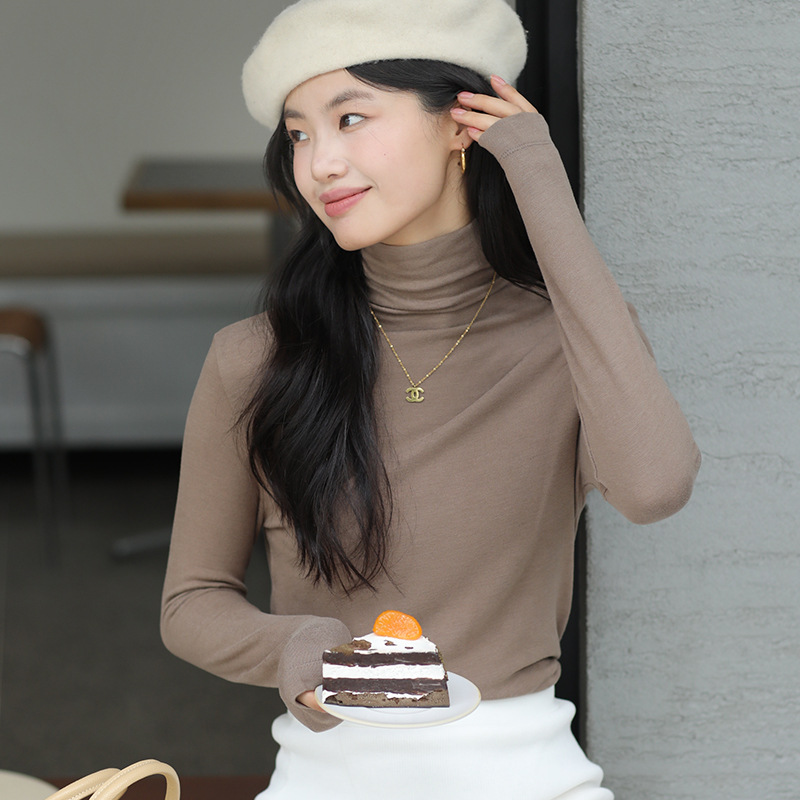 羊毛打底衫女秋冬加绒半高领羊毛衫长袖上衣外穿高领内搭针织毛衣
