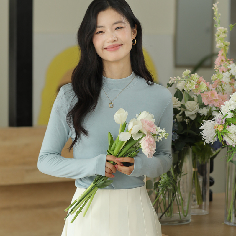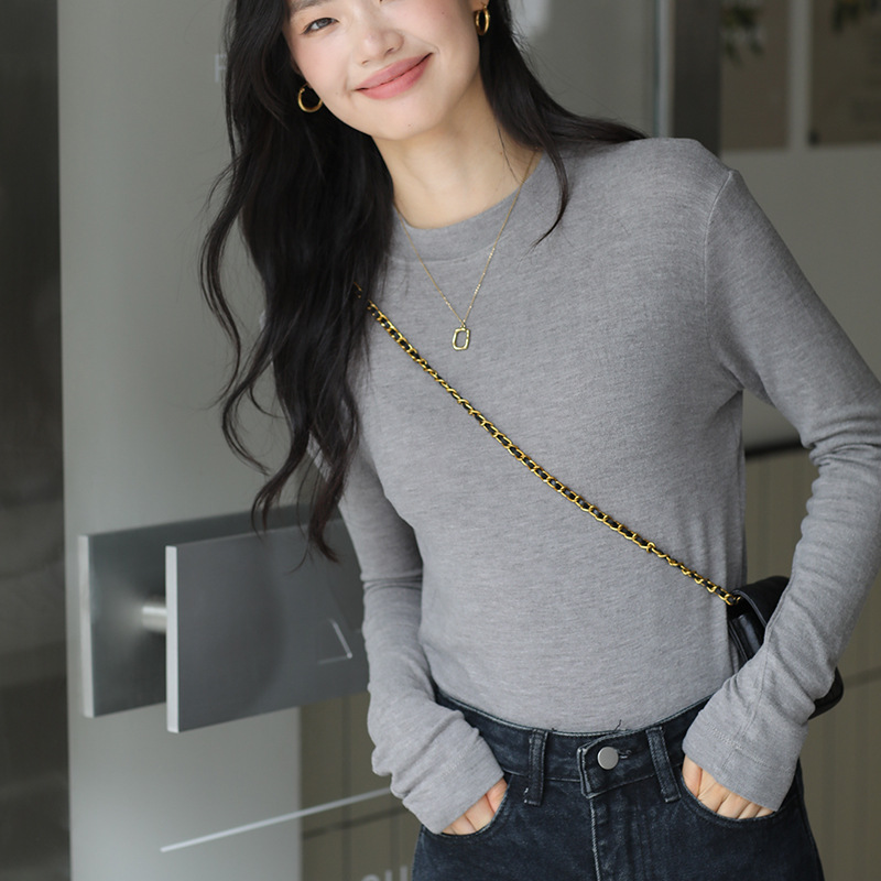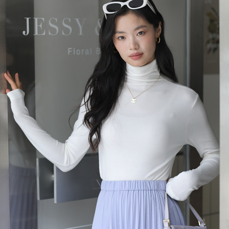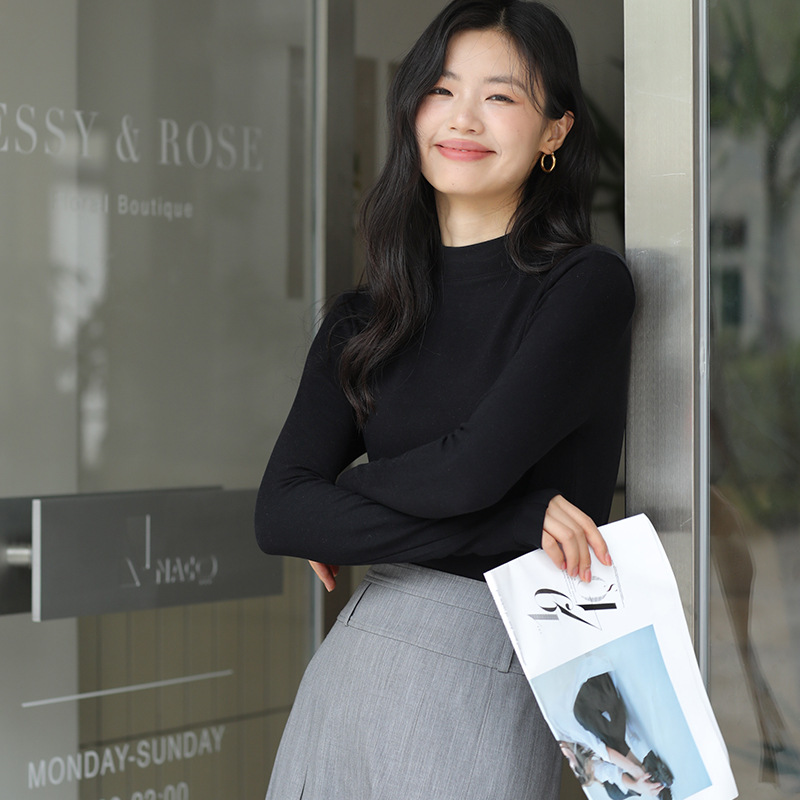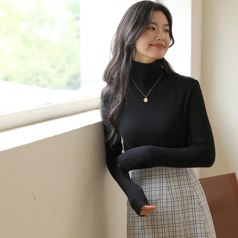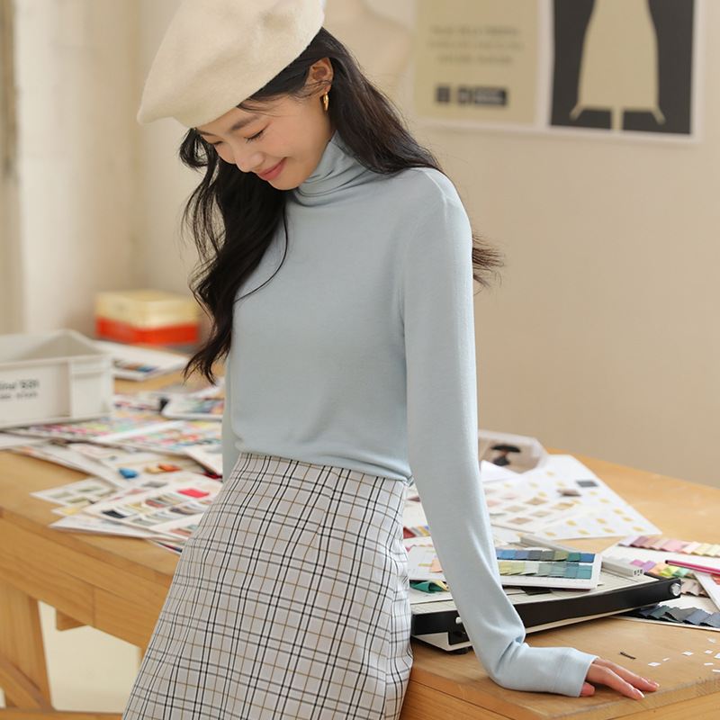 羊毛打底衫女秋冬加绒半高领羊毛衫长袖上衣外穿高领内搭针织毛衣