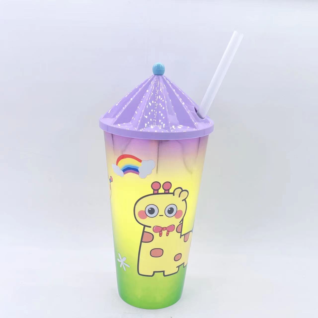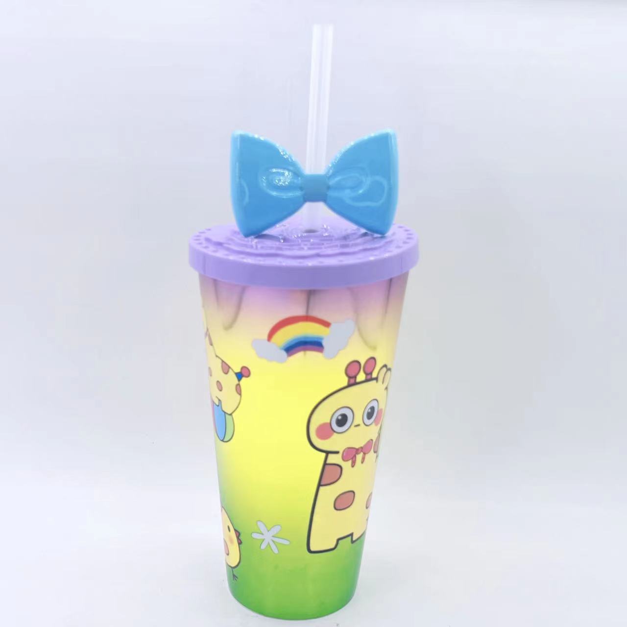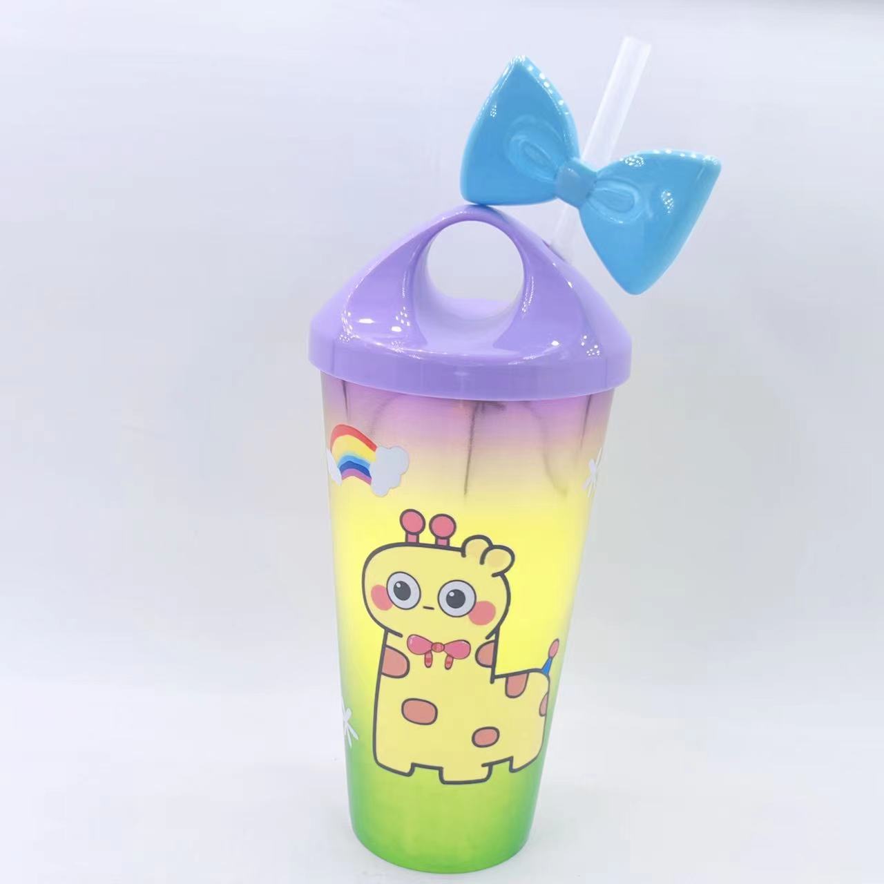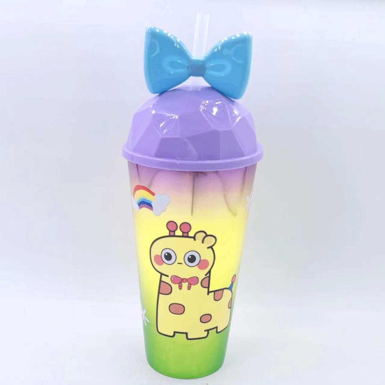 新款塑料水杯创意卡通动物吸管杯高颜值可爱奶茶果汁杯厂家批发