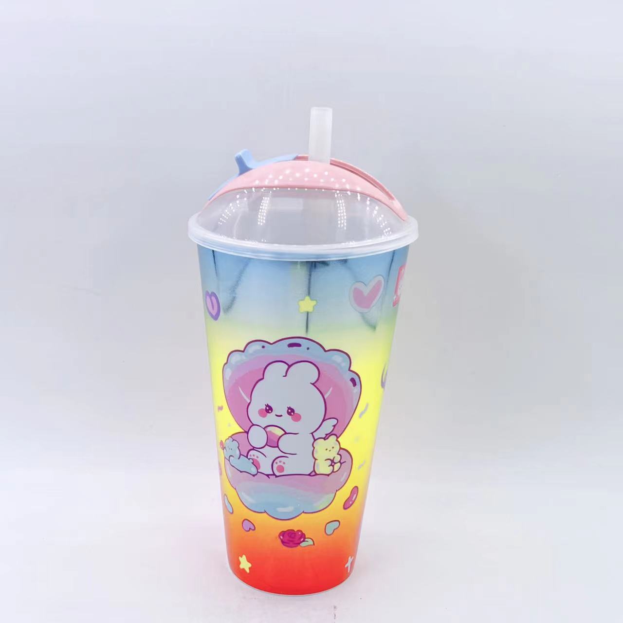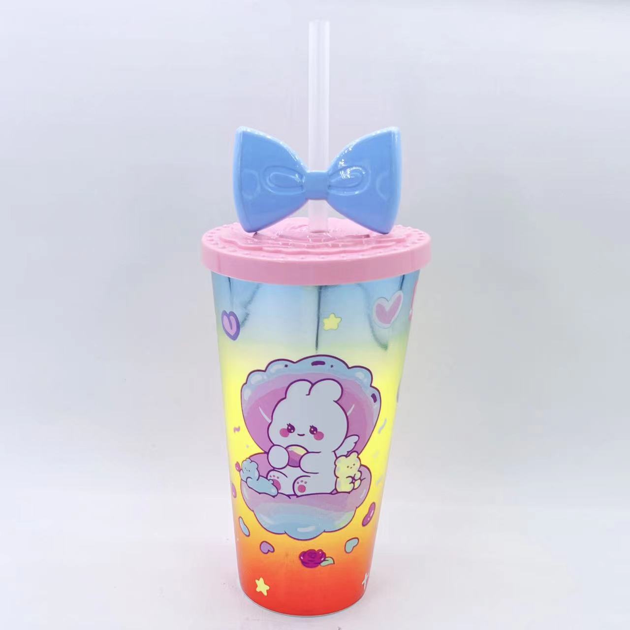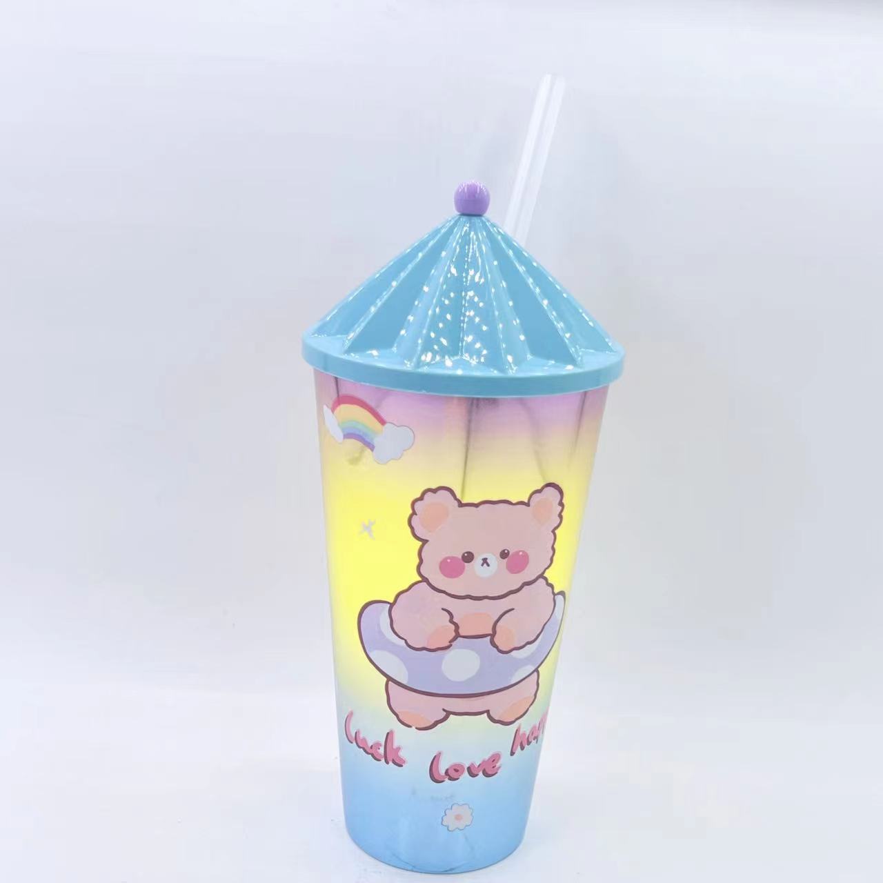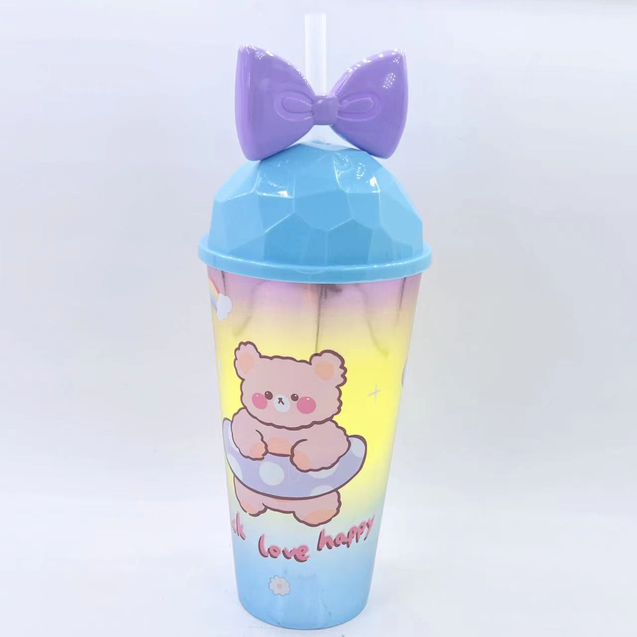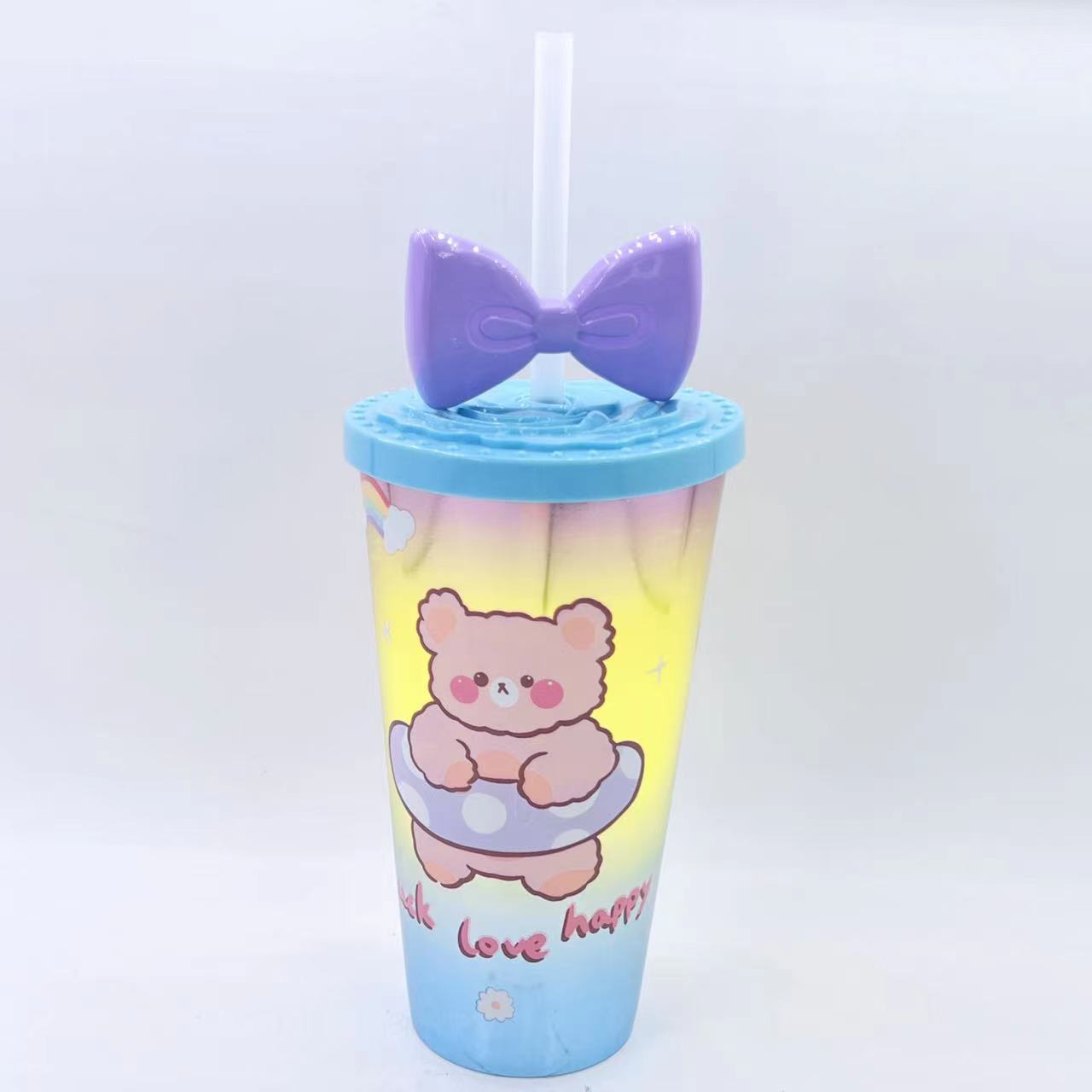 新款塑料水杯创意卡通动物吸管杯高颜值可爱奶茶果汁杯厂家批发