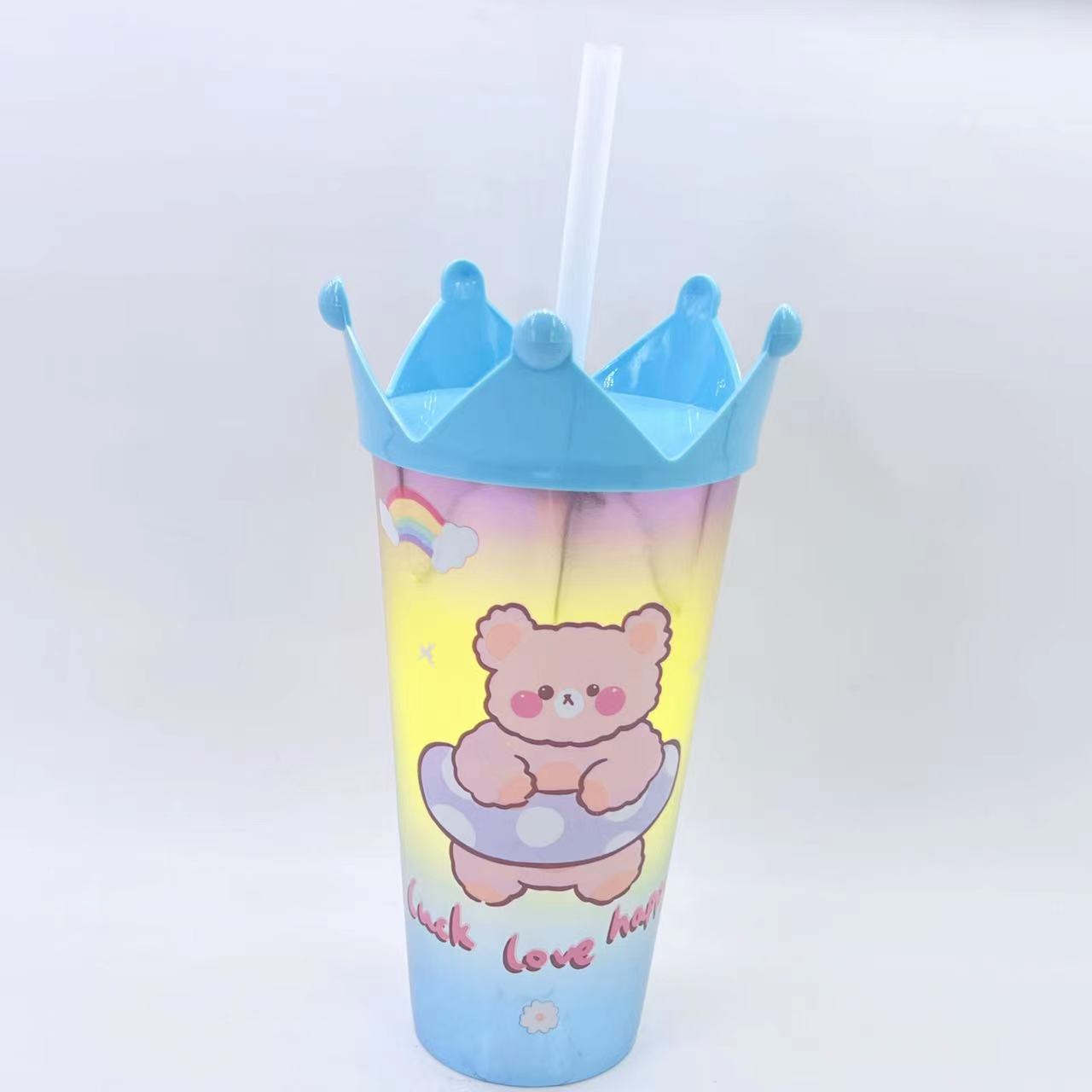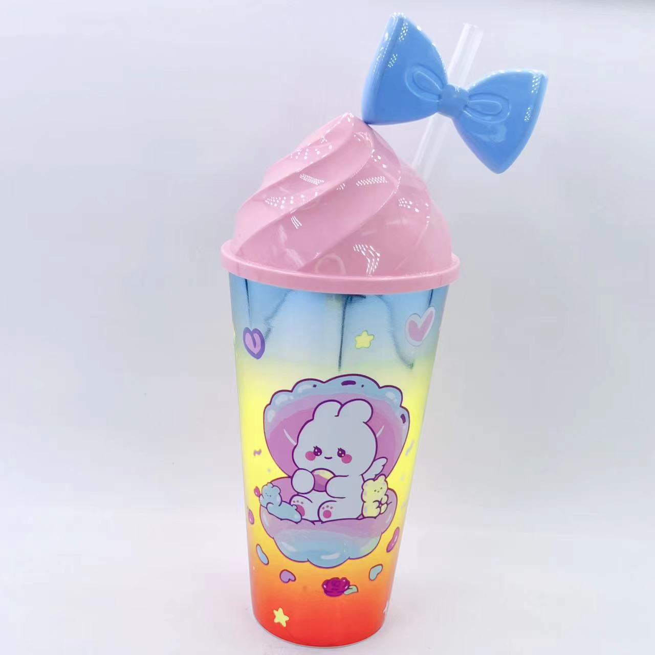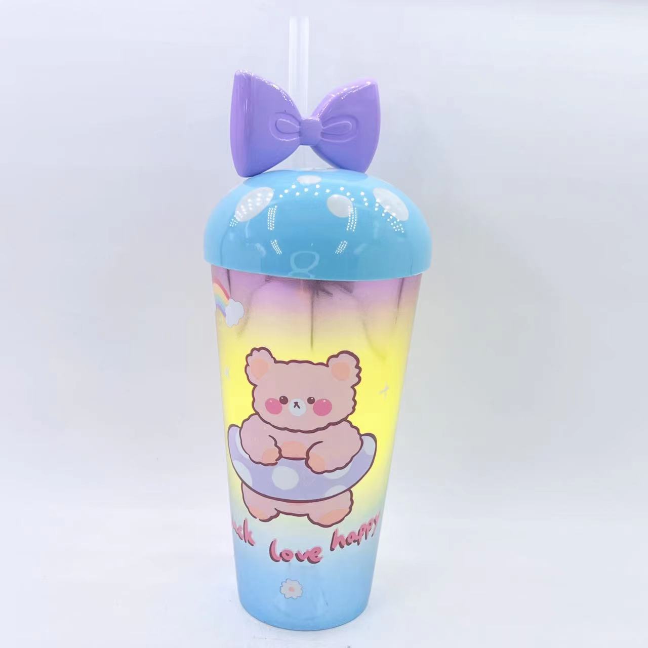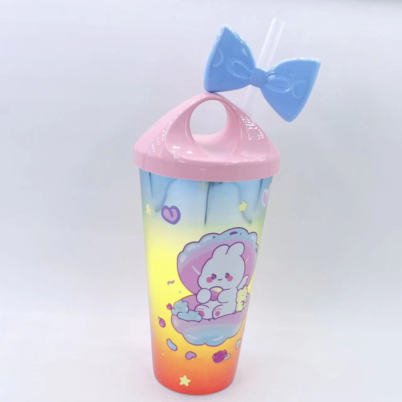 新款塑料水杯创意卡通动物吸管杯高颜值可爱奶茶果汁杯厂家批发