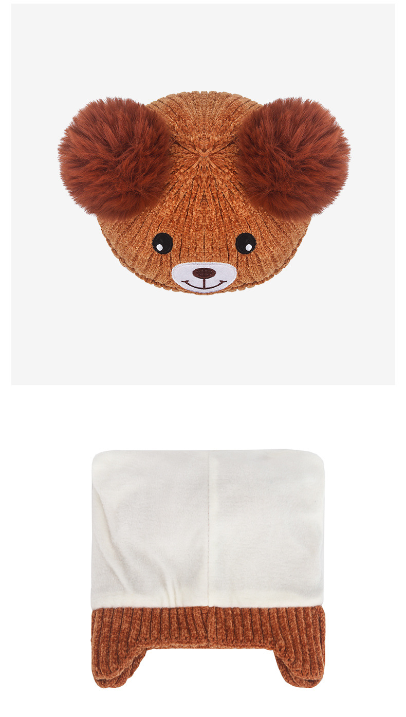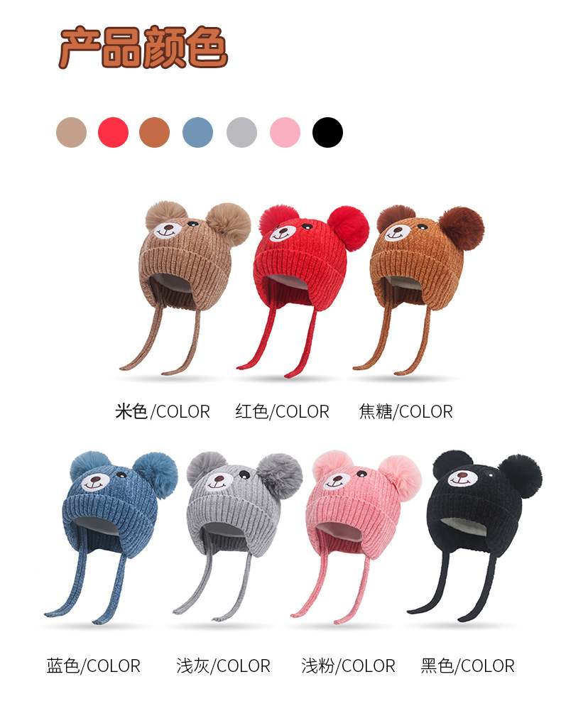 儿童毛线帽子两头门小熊双毛球婴幼儿宝宝针织帽冬季保暖护耳小孩