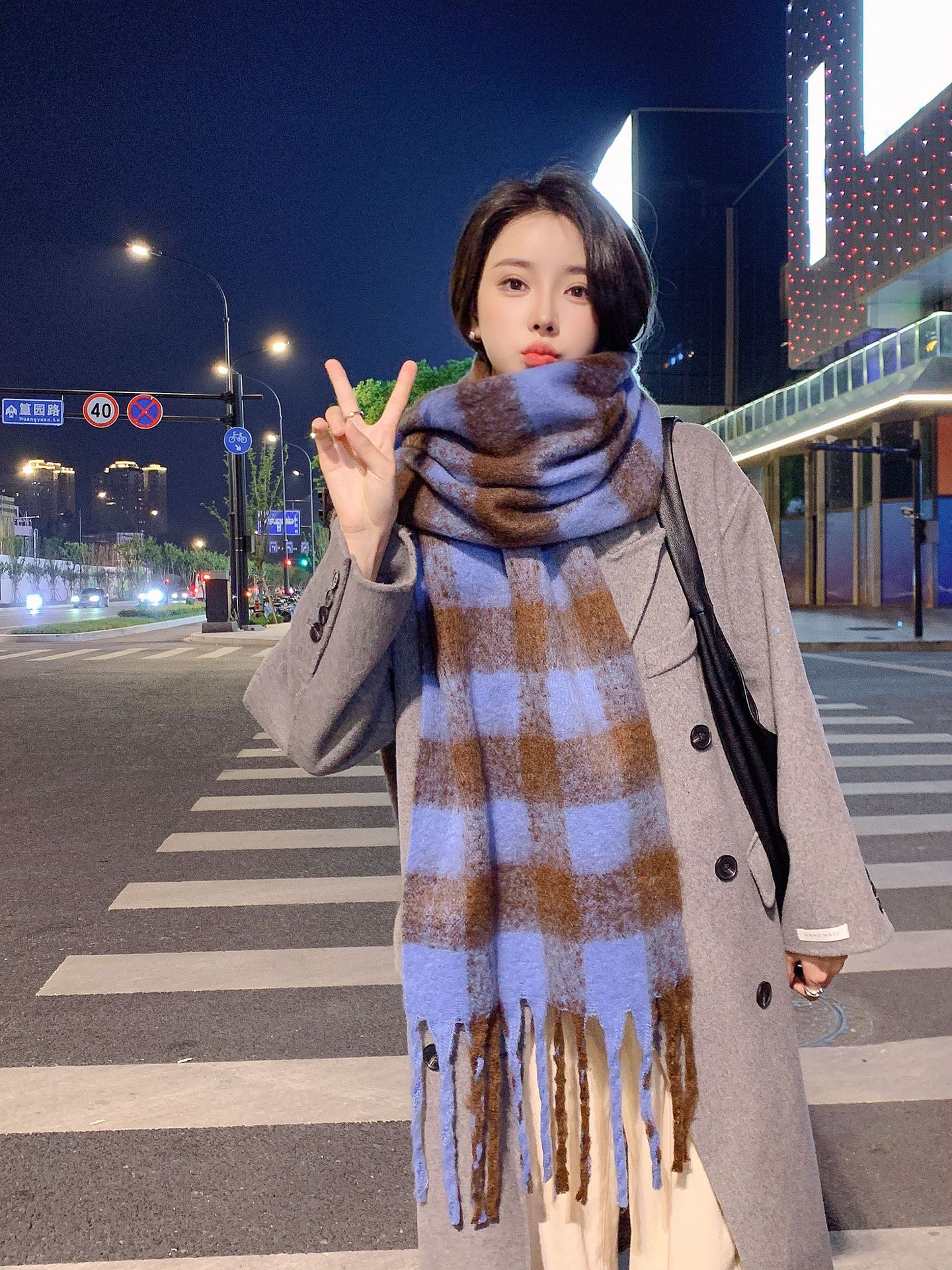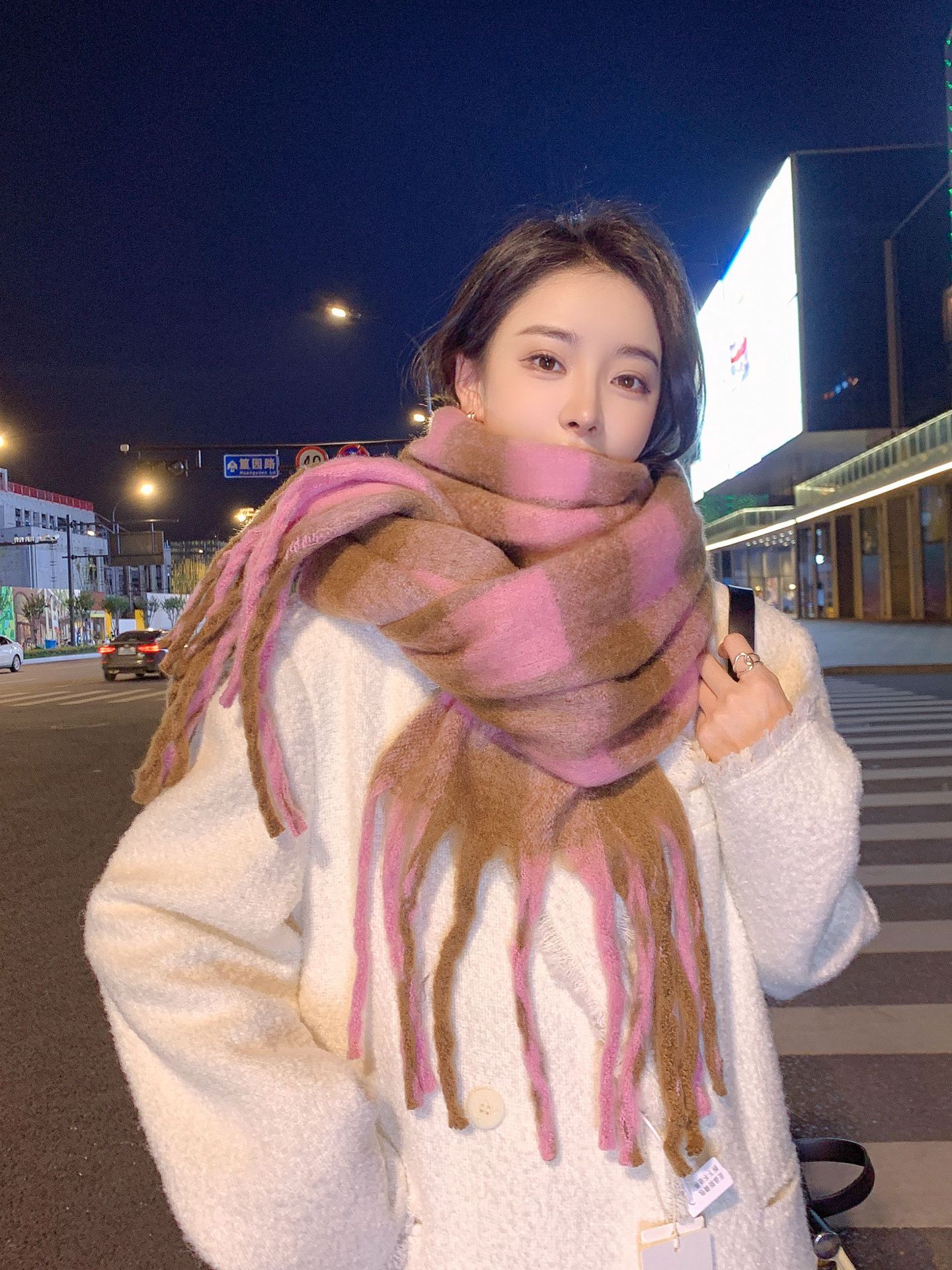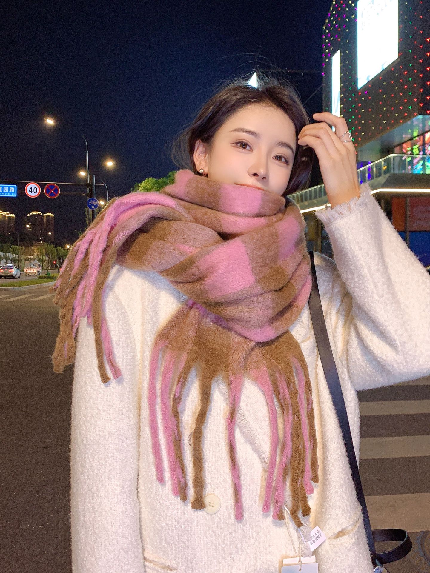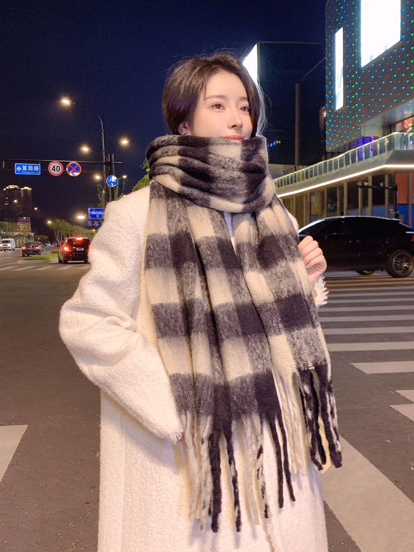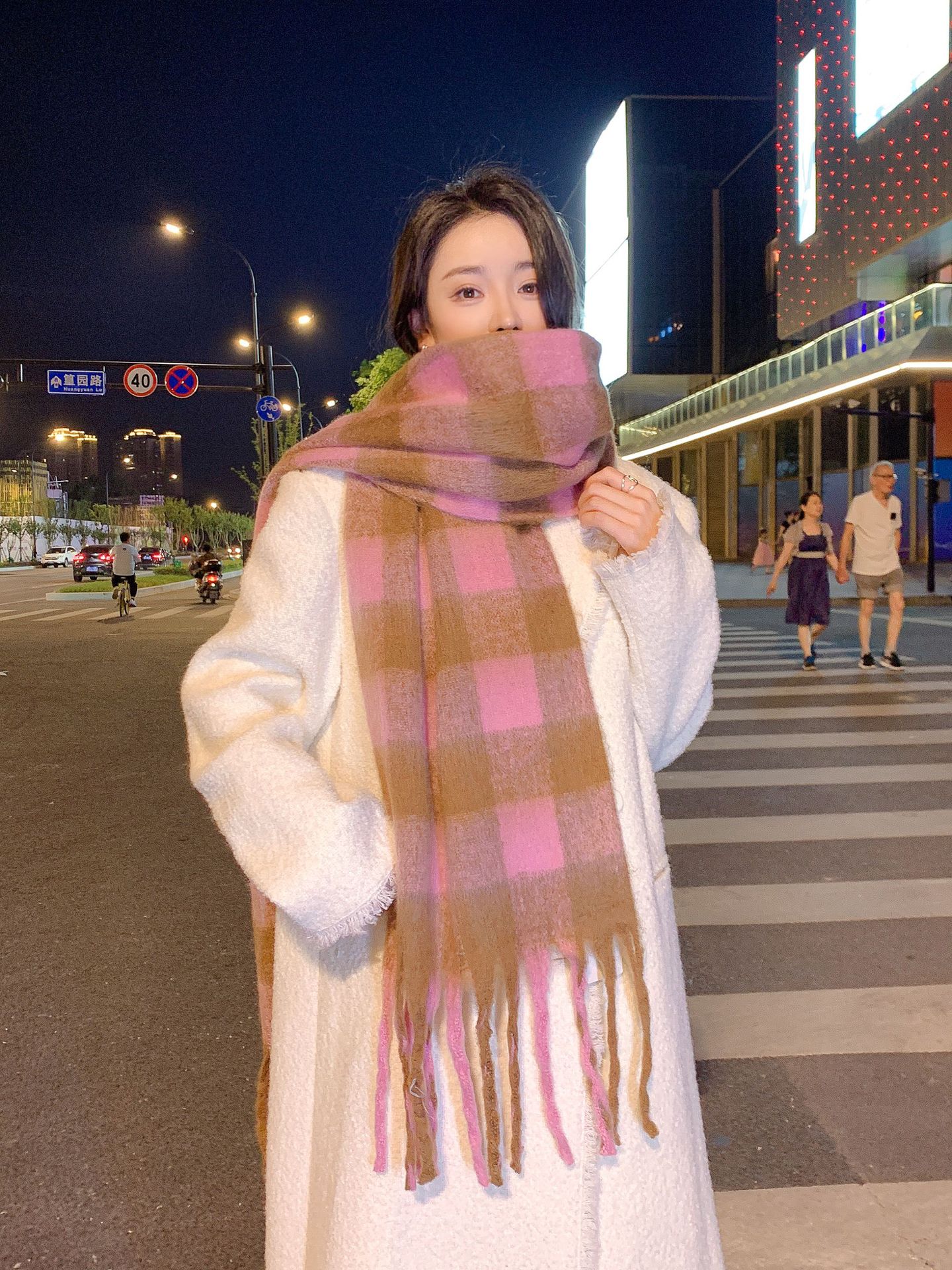 虞书欣同款仿羊绒格子围巾冬韩版高级感加厚方格保暖围脖软糯披肩