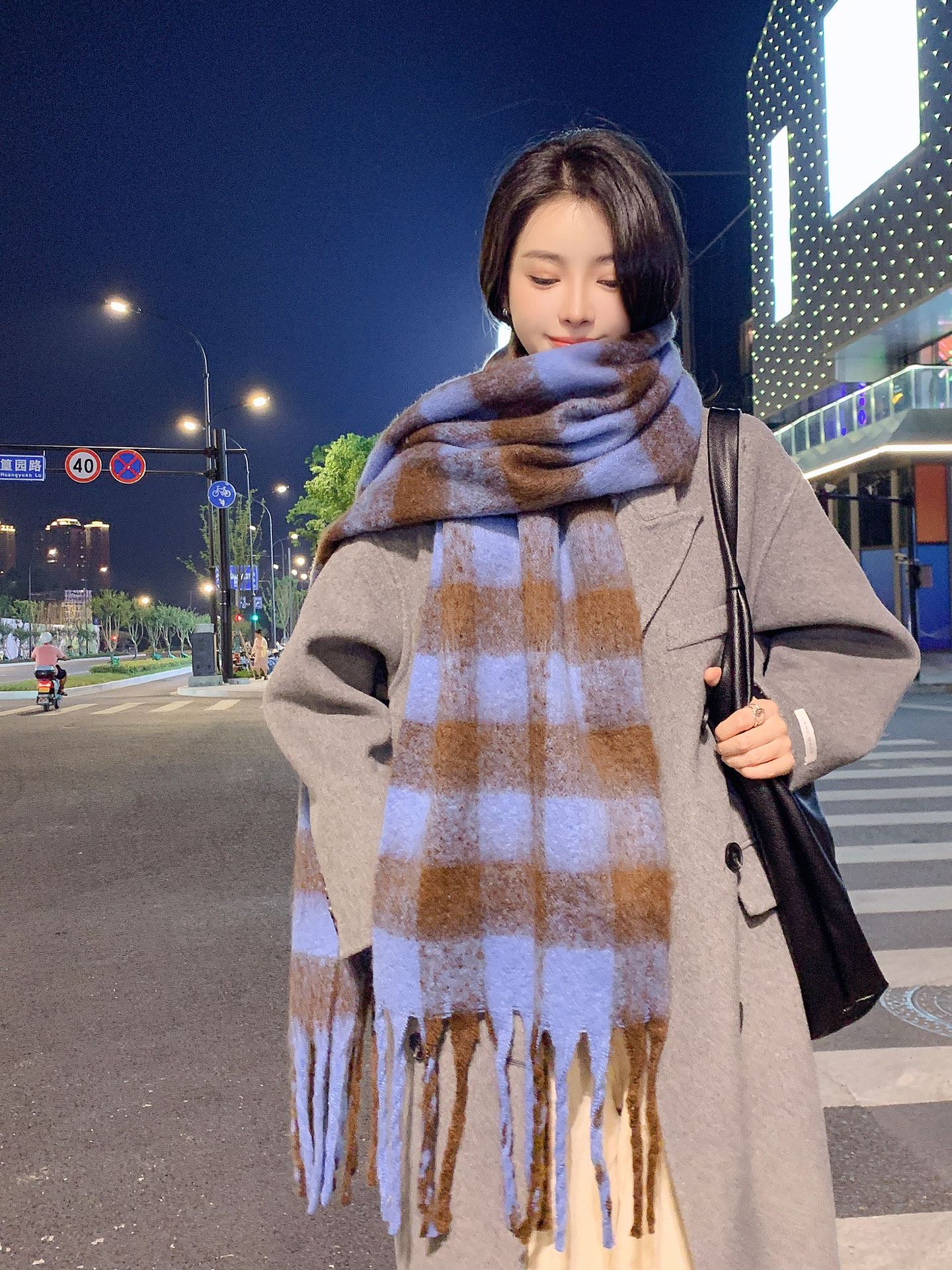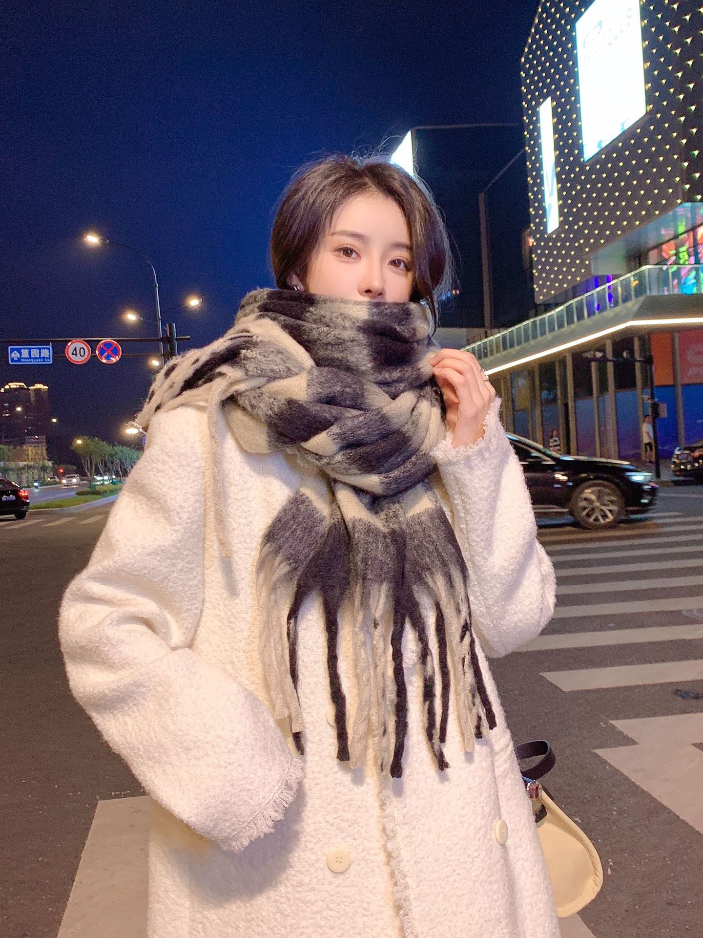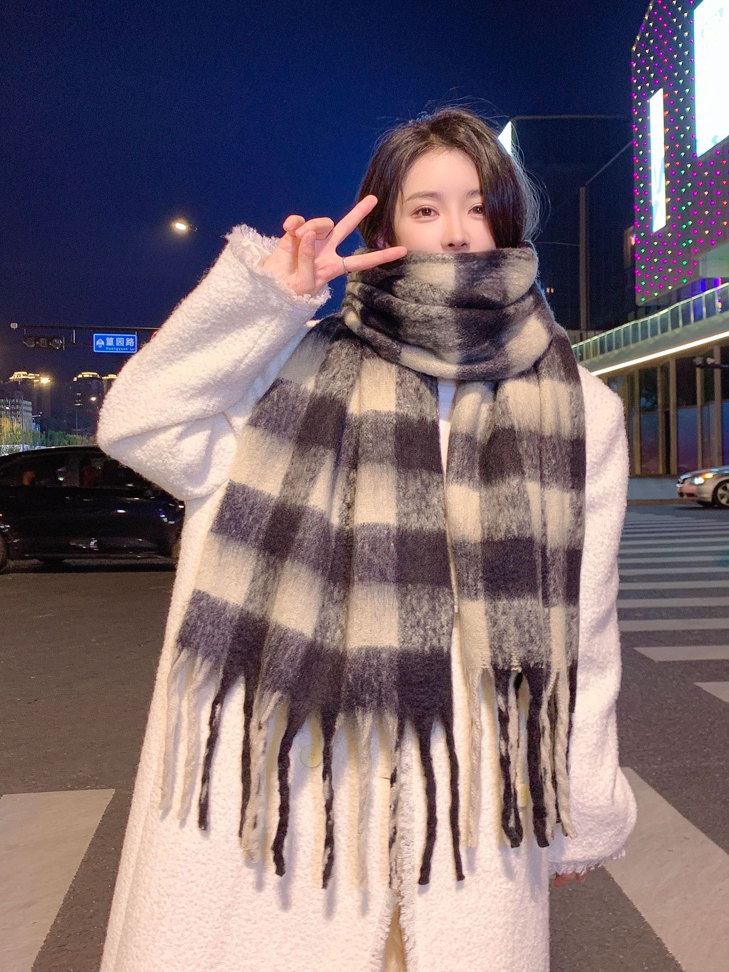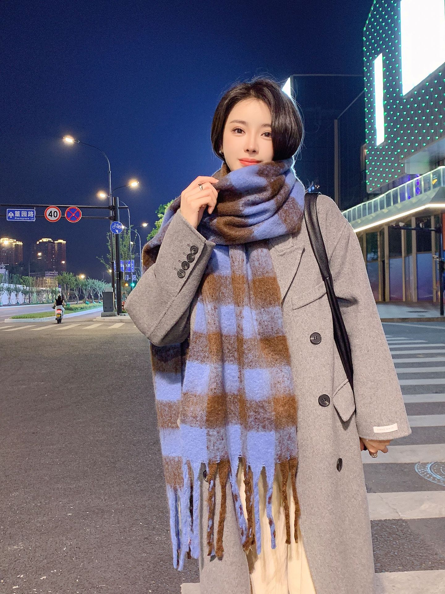 虞书欣同款仿羊绒格子围巾冬韩版高级感加厚方格保暖围脖软糯披肩