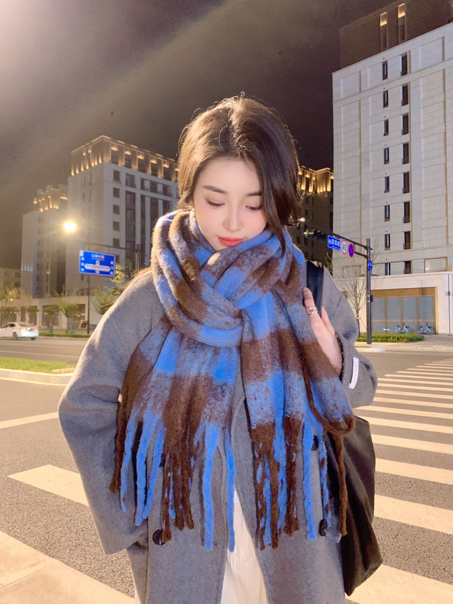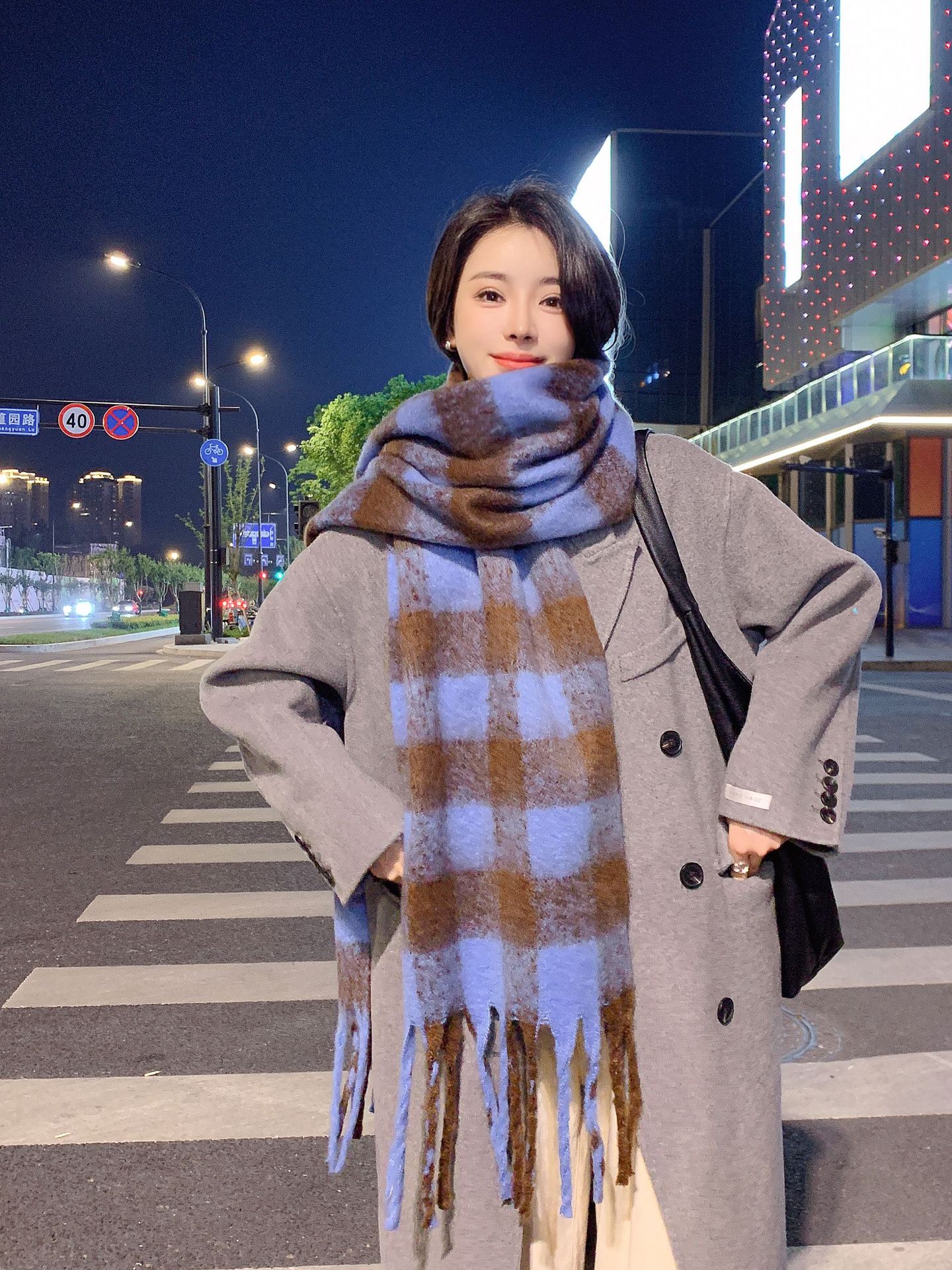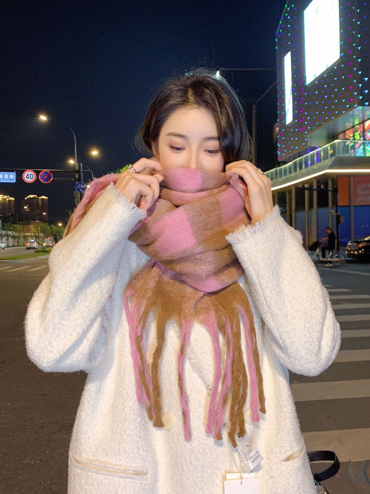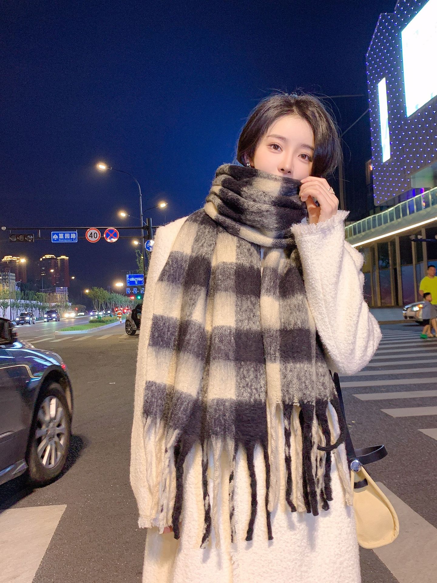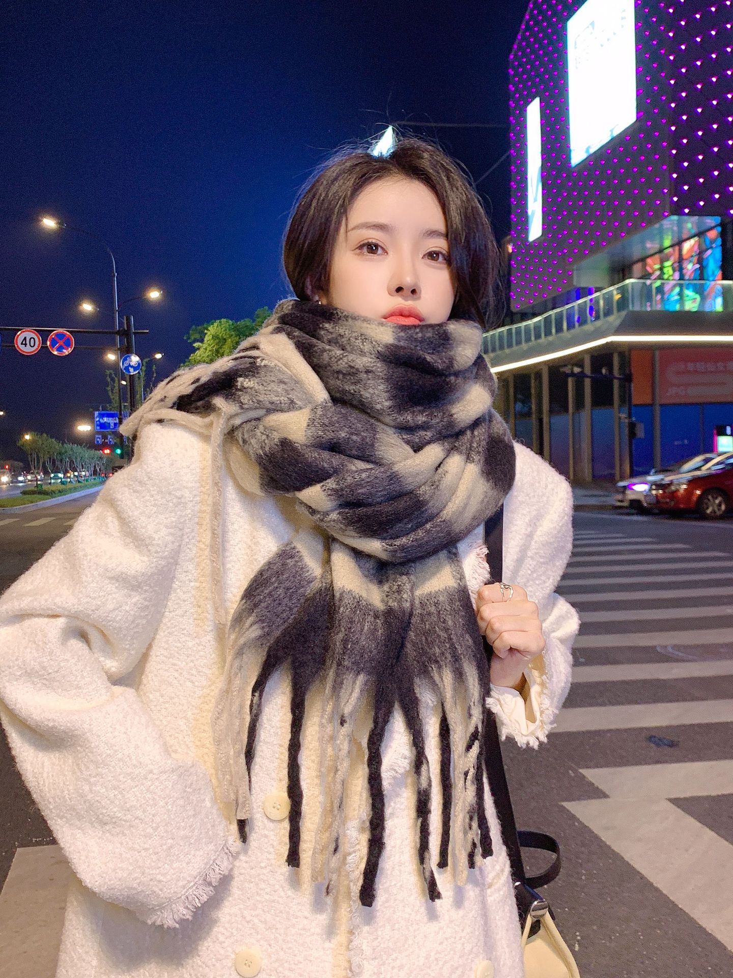虞书欣同款仿羊绒格子围巾冬韩版高级感加厚方格保暖围脖软糯披肩