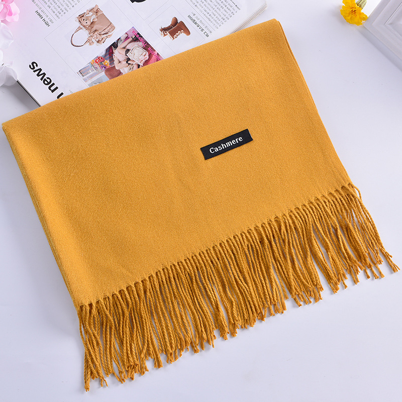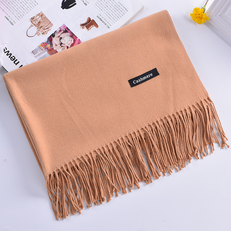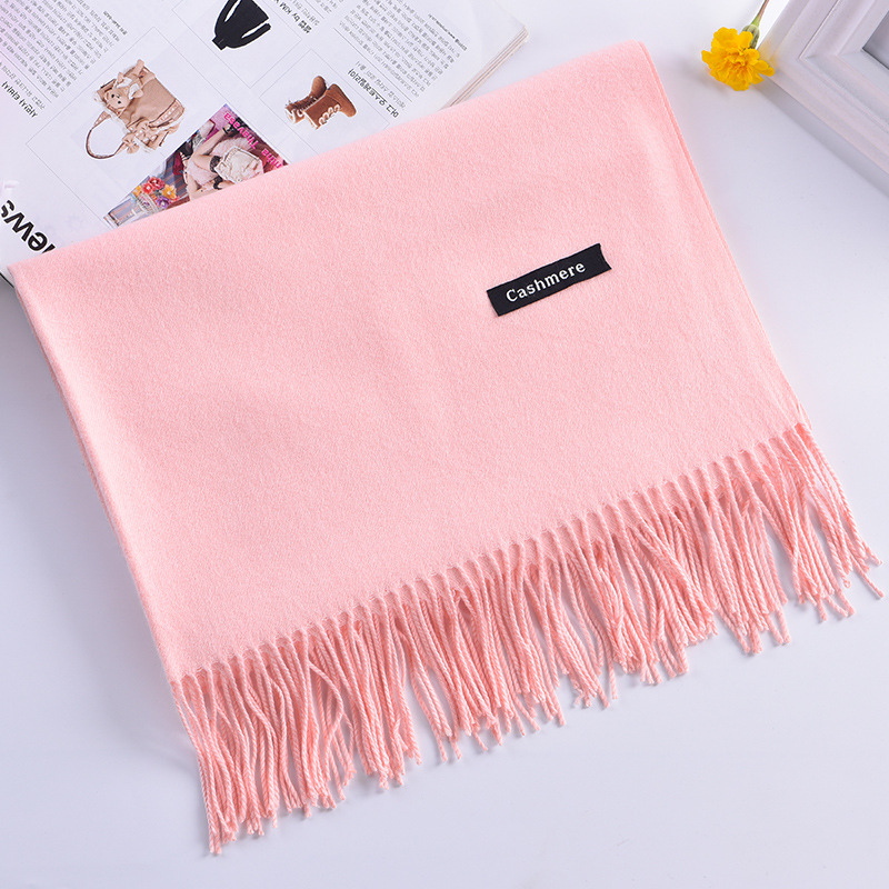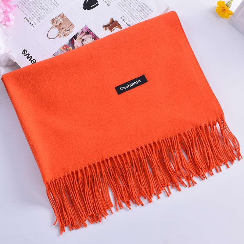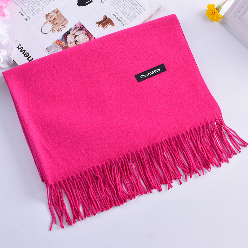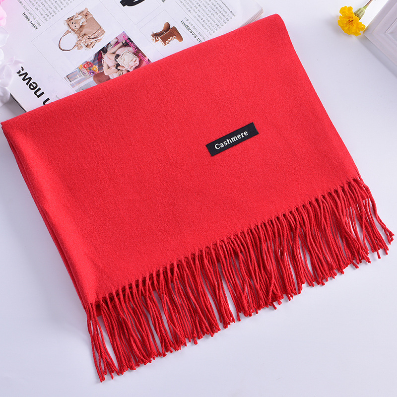 秋冬欧美新款大红公司年会礼品同学聚会纯色流苏仿羊绒围巾批发