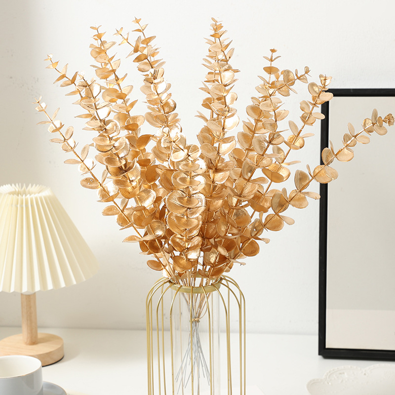仿真单支金色尤加利 新年家居福桶插花装饰塑料花商场布置年宵花