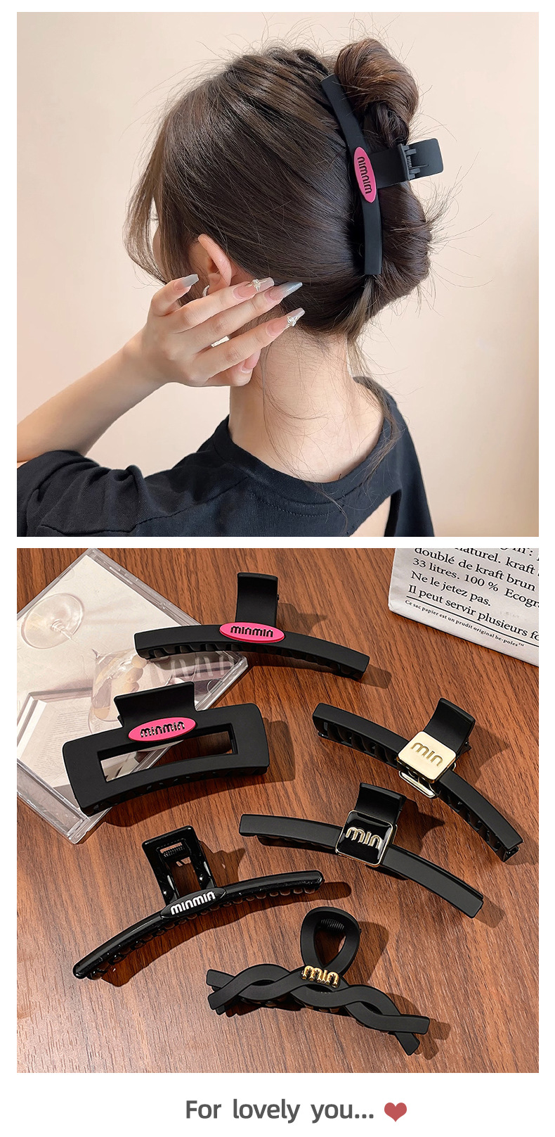 磨砂minmin抓夹女士高端显发量塑料发夹后脑勺大号鲨鱼夹头饰夹子