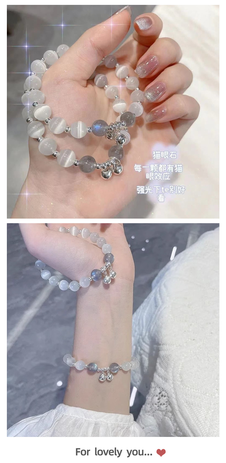 猫眼石铃铛手链学生手串ins风小众设计闺蜜同款月光串珠女生手饰