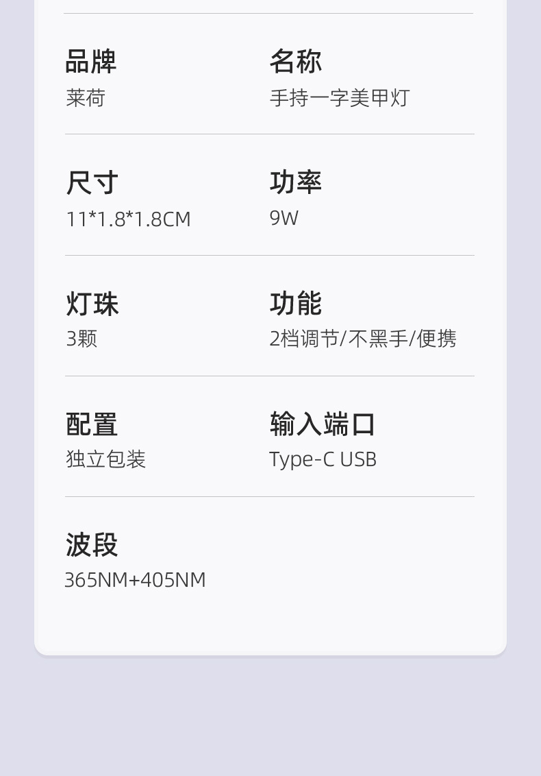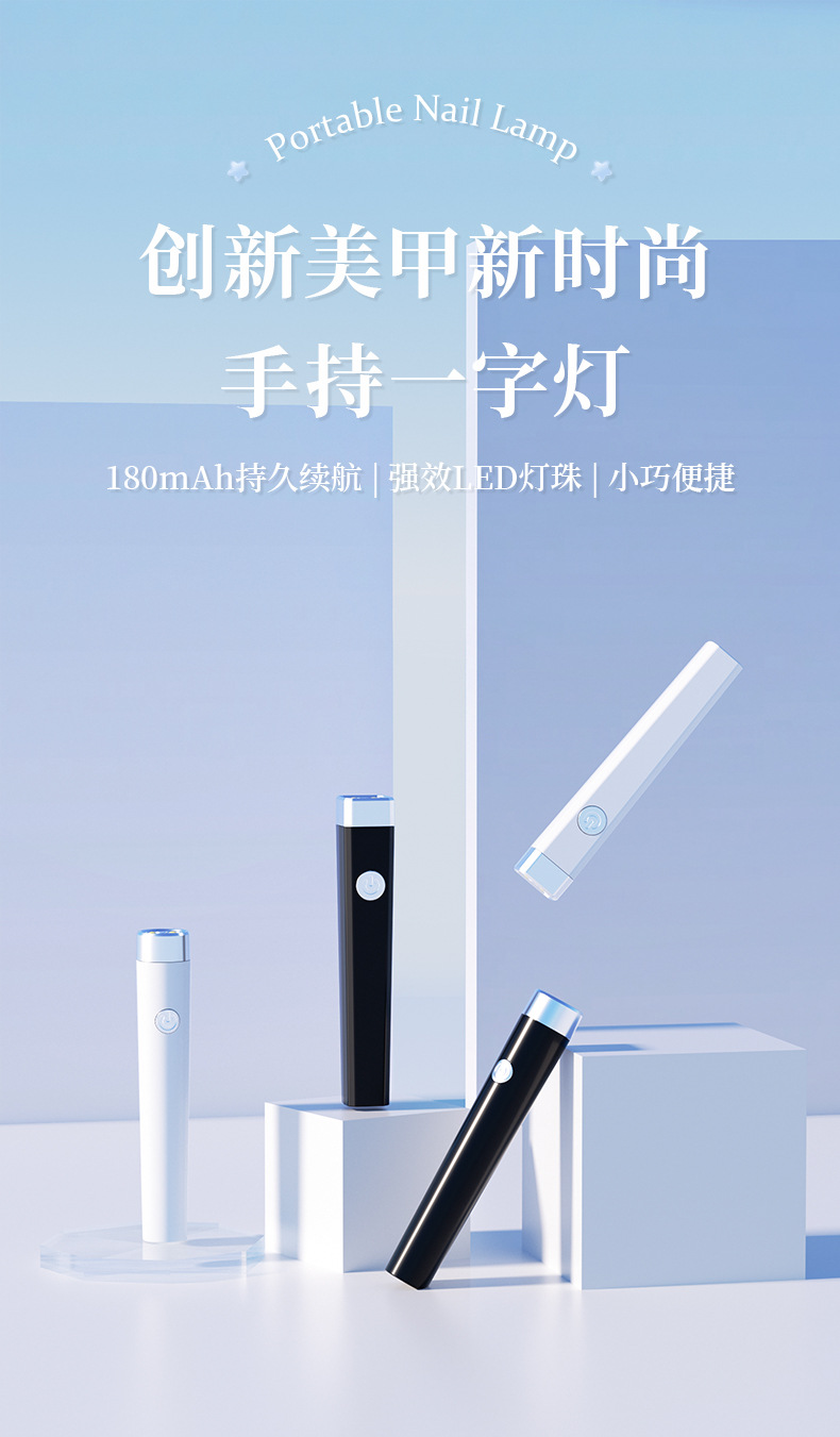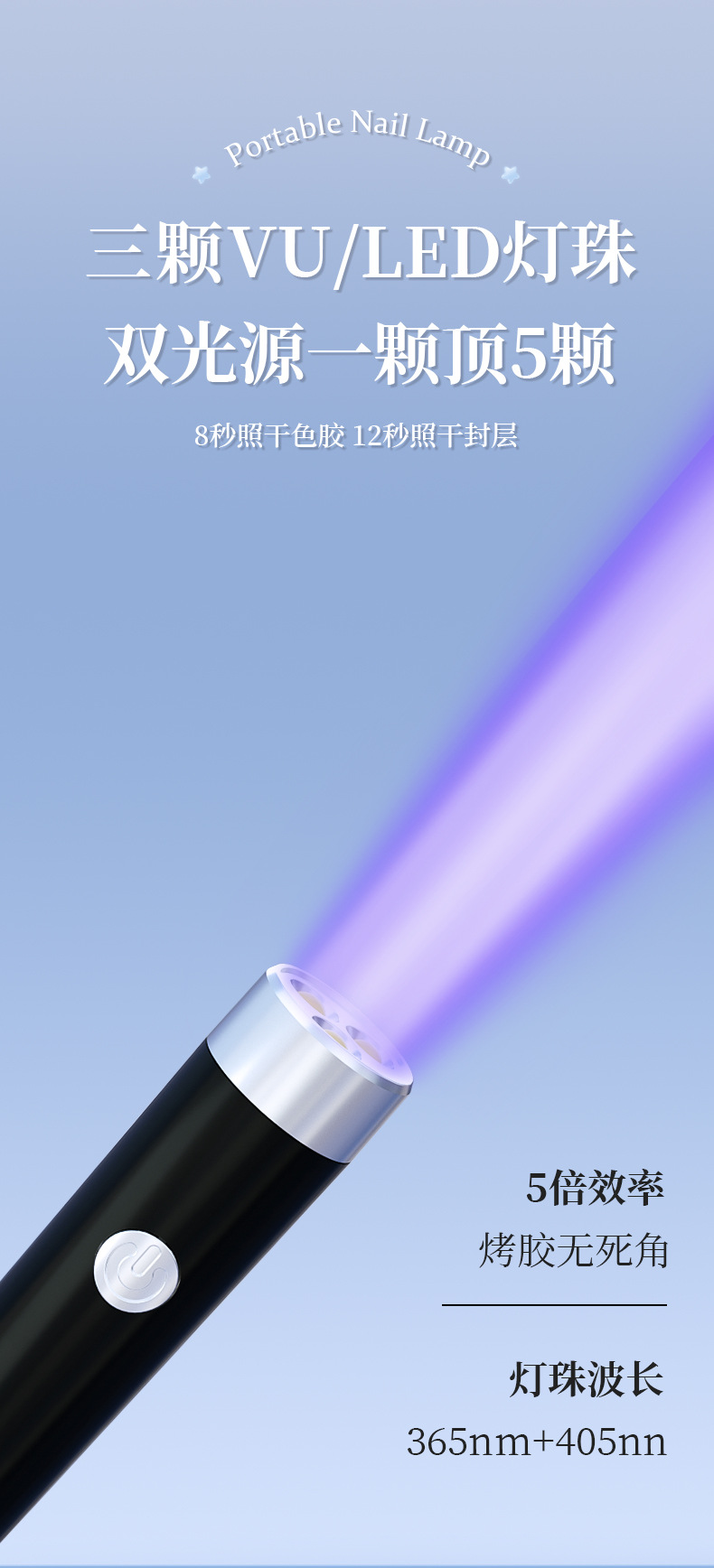 手持美甲一字灯小型便携迷你光疗灯甲片烤灯照灯插电蓄电速干