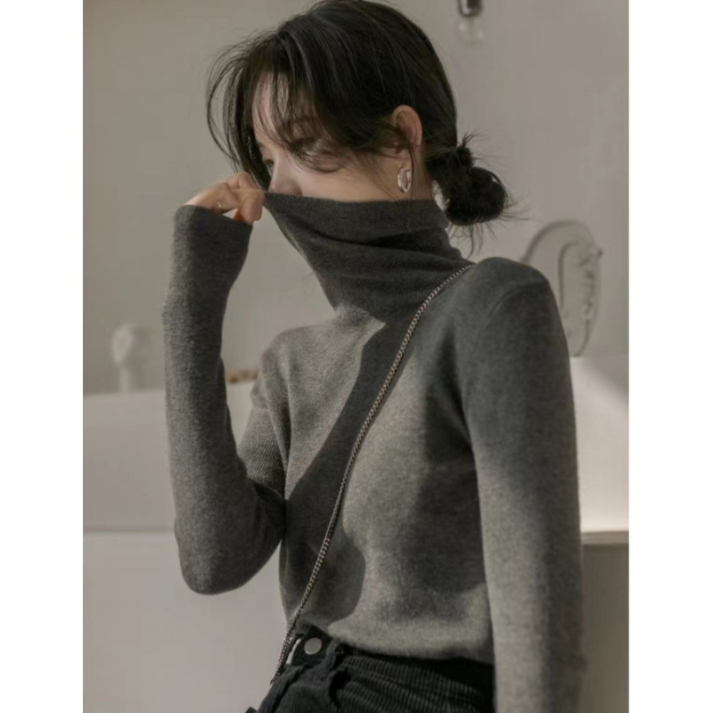 高领毛衣女秋冬2023洋气内搭新款保暖针织打底衫修身长袖软糯上衣