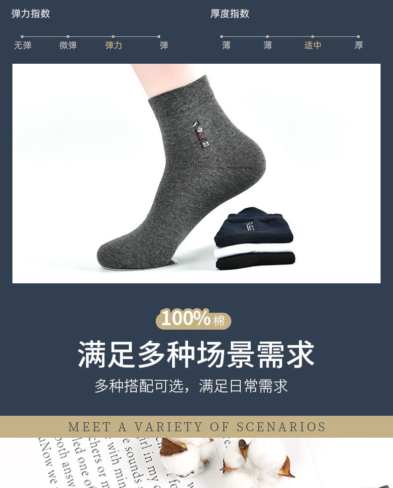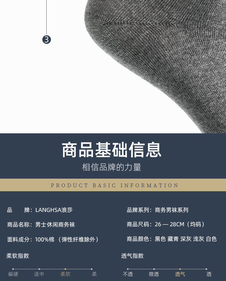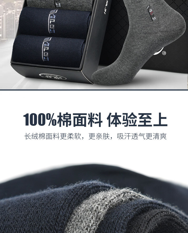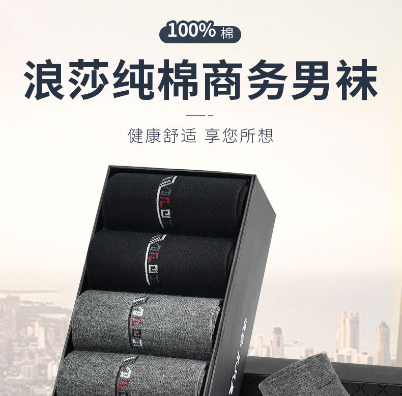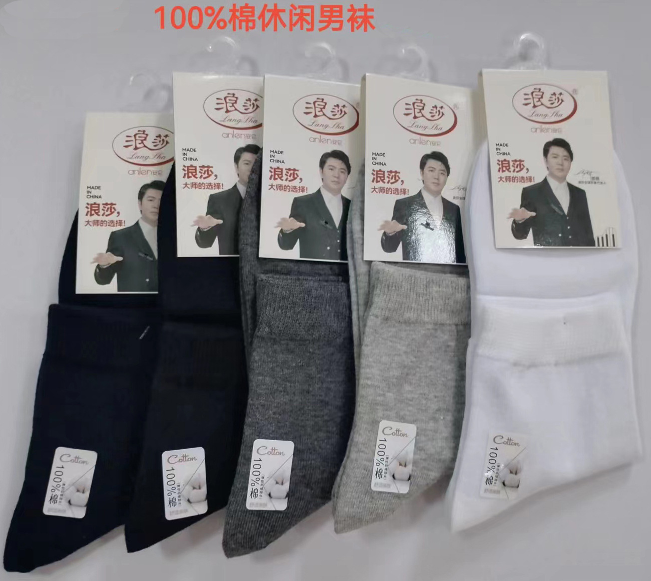 浪莎袜子秋冬款中筒棉袜男士纯棉吸汗透气休闲袜子百搭商务款批发