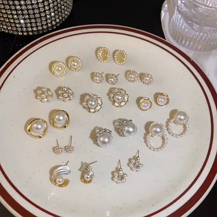 S925银针百搭气质猫眼石耳钉高级设计感耳饰品轻奢小众珍珠耳环女