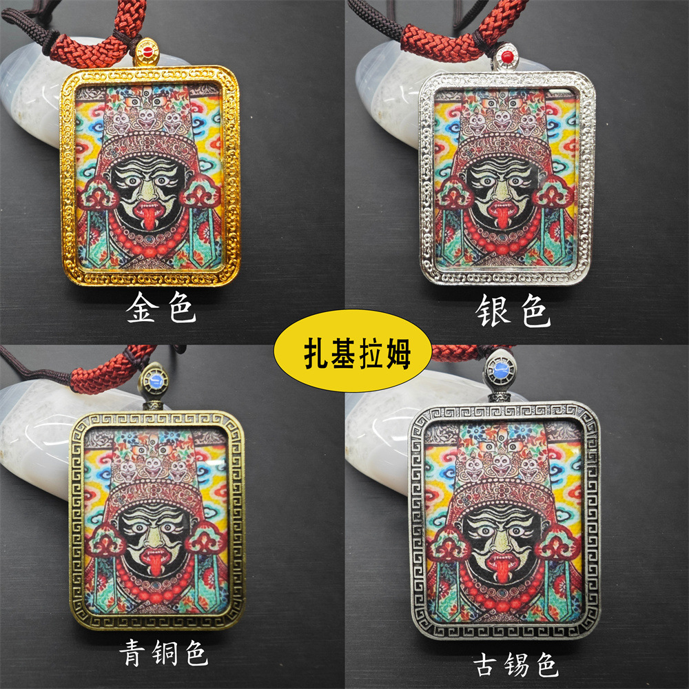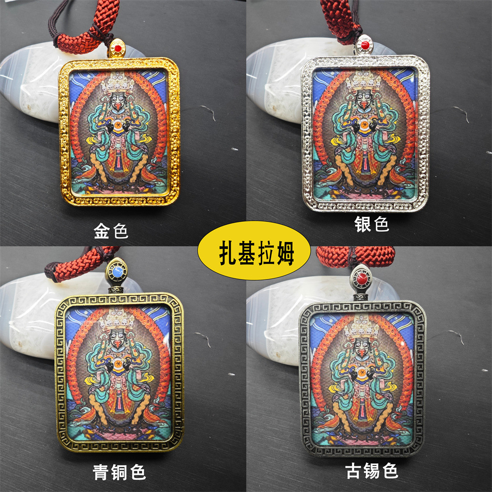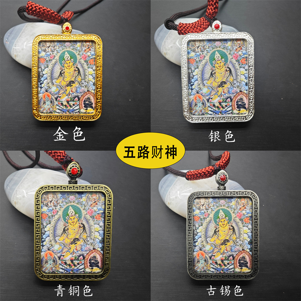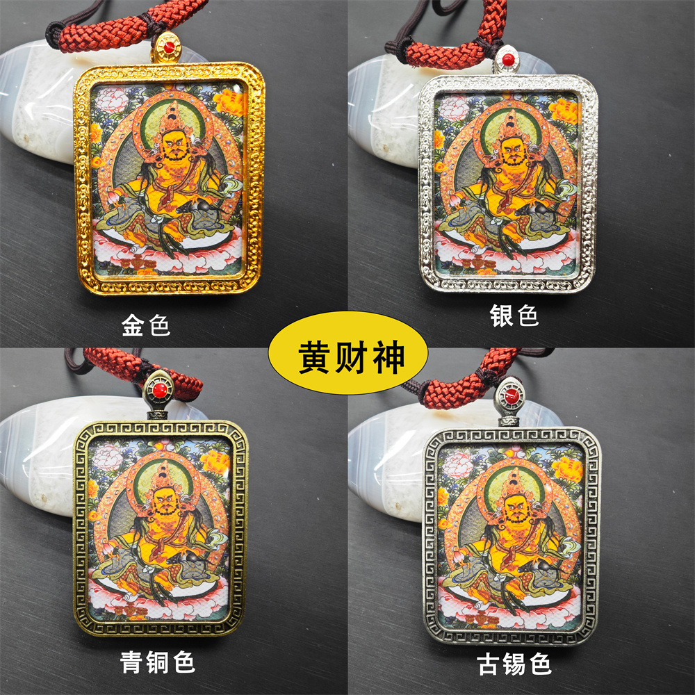 永慈双面唐卡项链布艺喷绘非手绘黄财神扎基拉姆前世今生吊坠