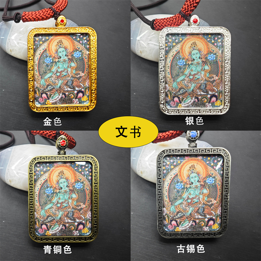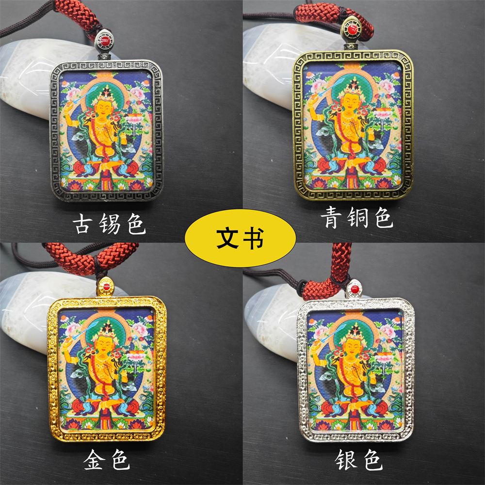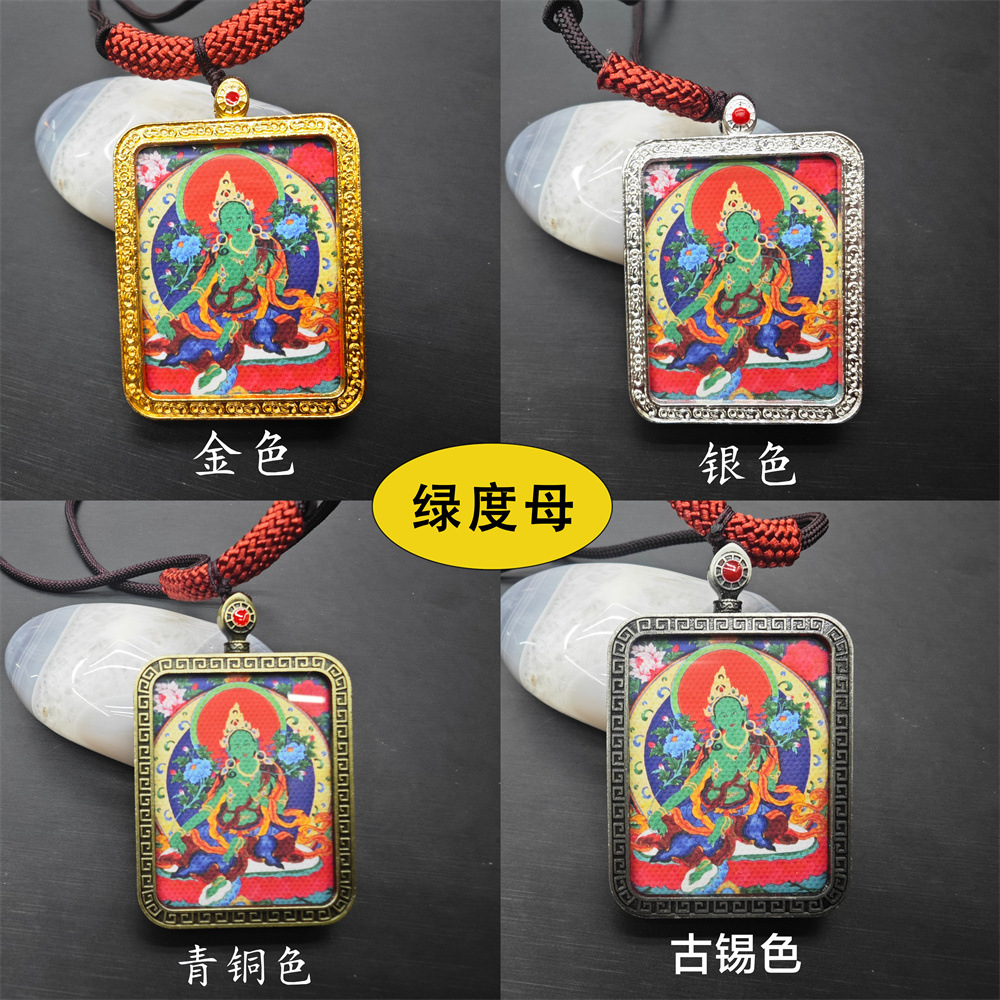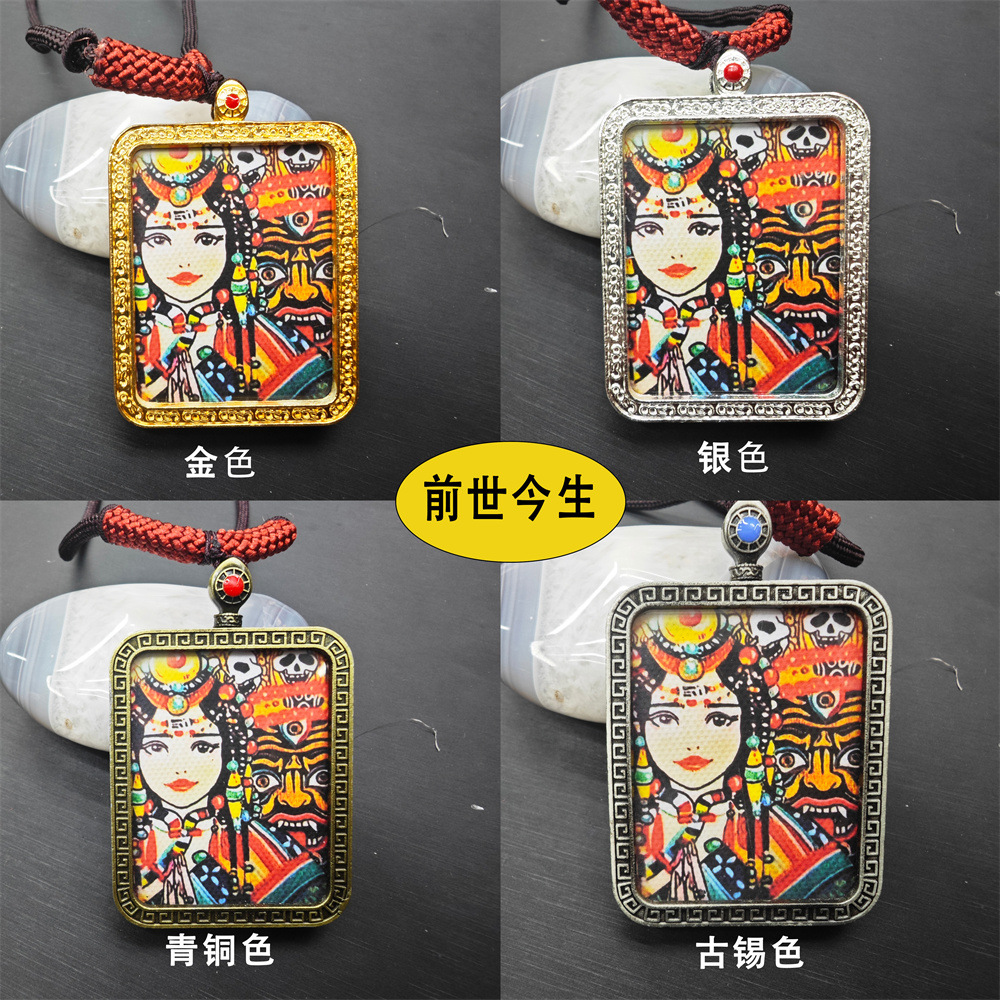 永慈双面唐卡项链布艺喷绘非手绘黄财神扎基拉姆前世今生吊坠