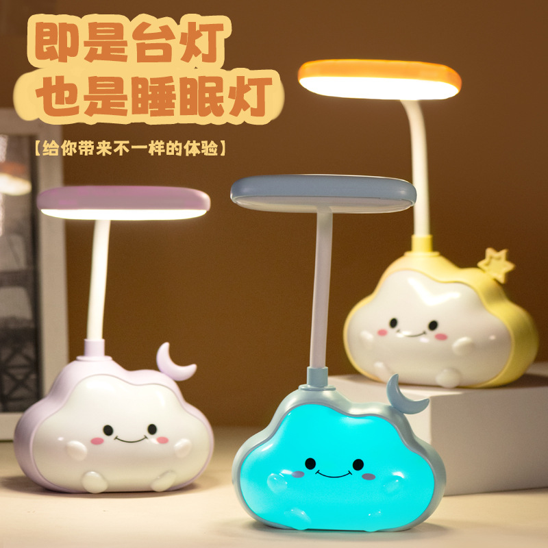 台灯学习卡通可爱云朵宿舍床头灯usb充电小夜灯儿童护眼LED氛围灯