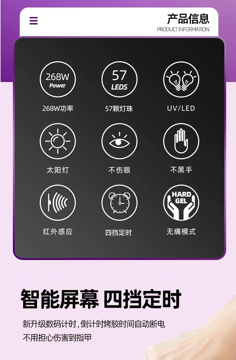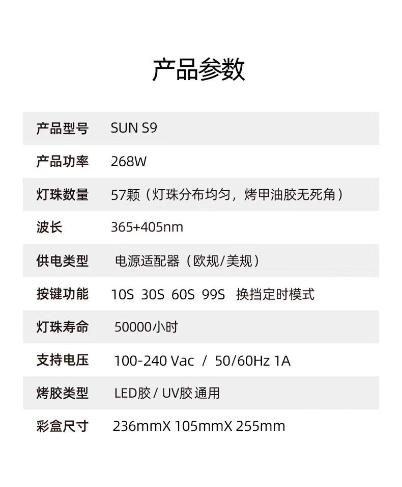 SunS9美甲灯268W大功率双光源LED光疗灯57颗灯珠感应甲油胶烘干机