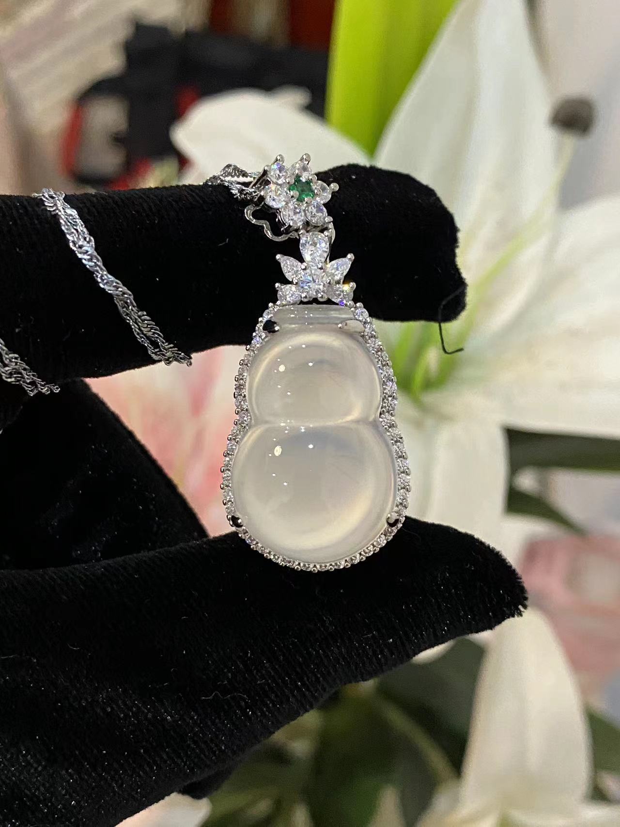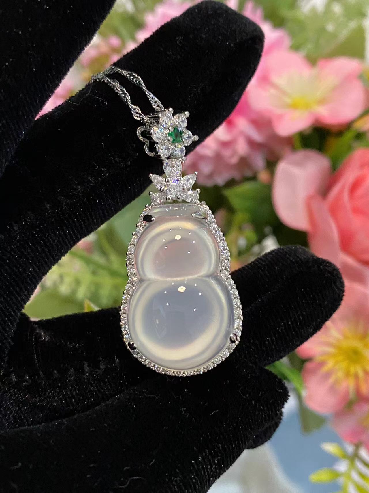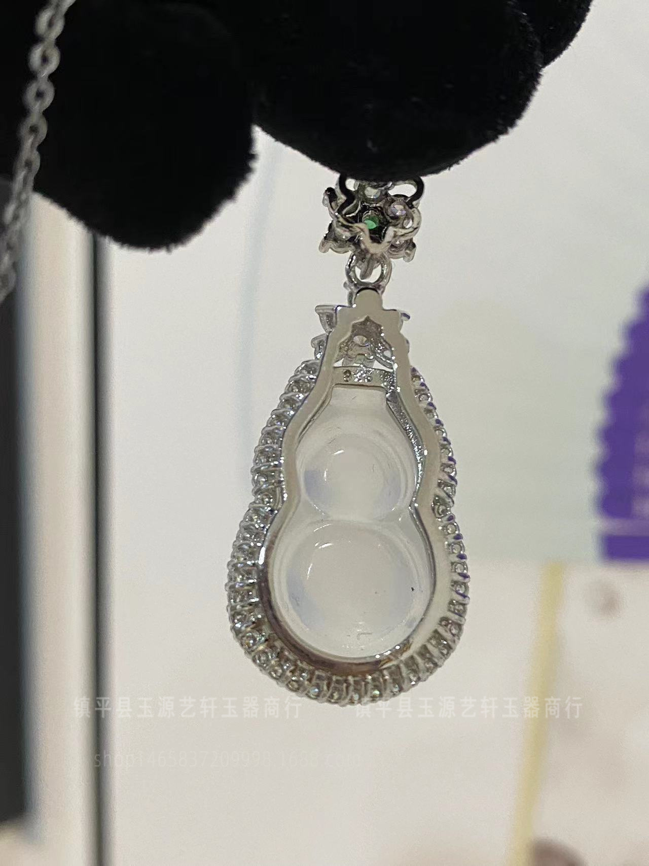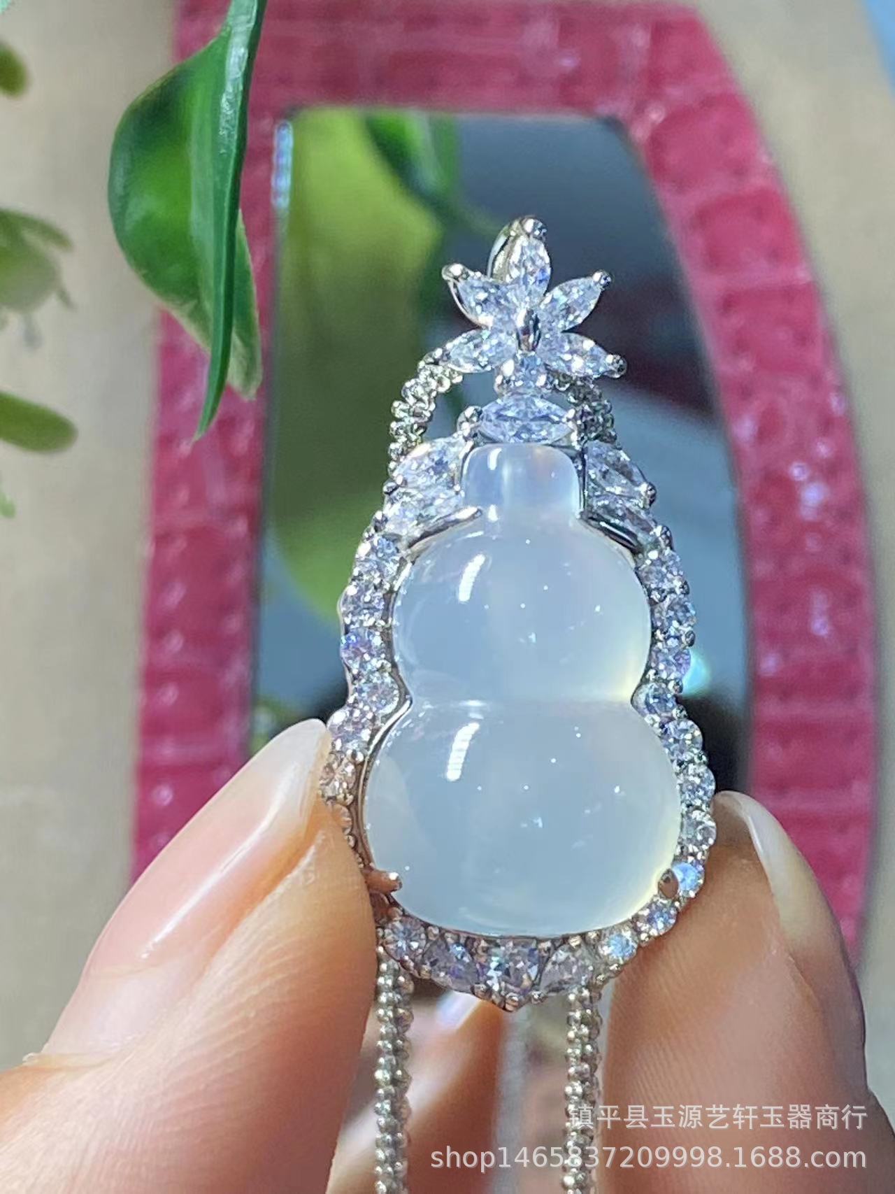 网红直播马达加斯加冰种玉髓葫芦吊坠925镀银镶嵌玛瑙福禄挂件批