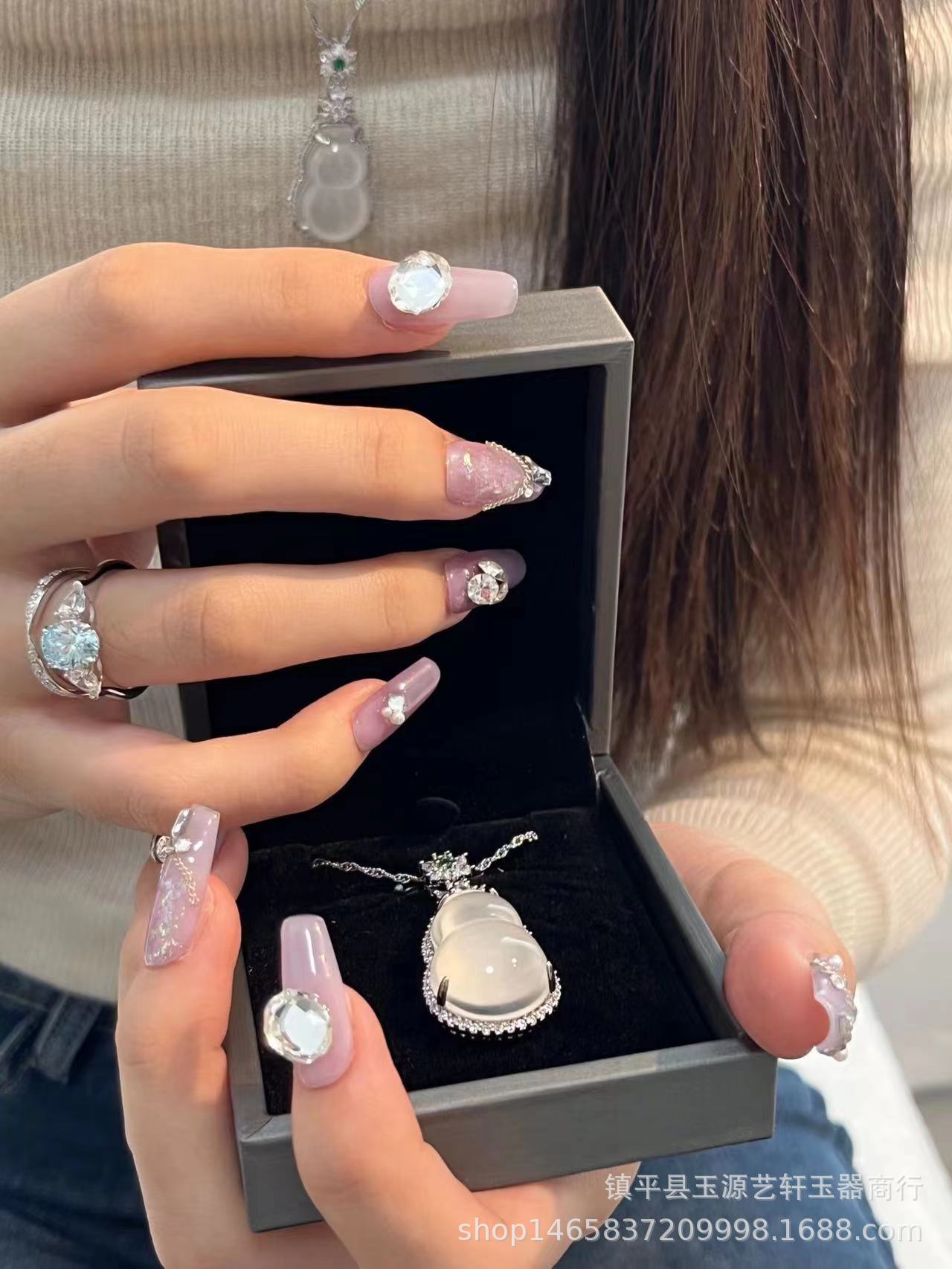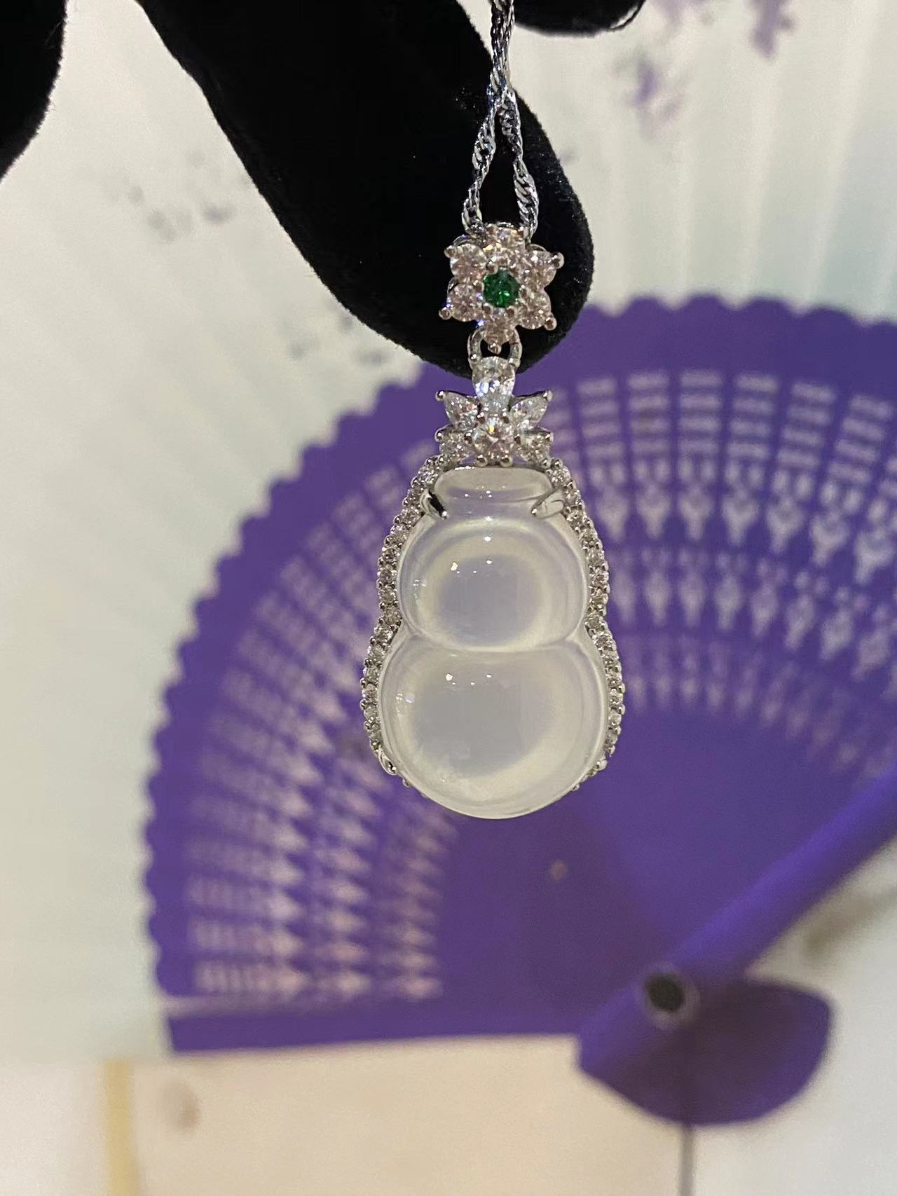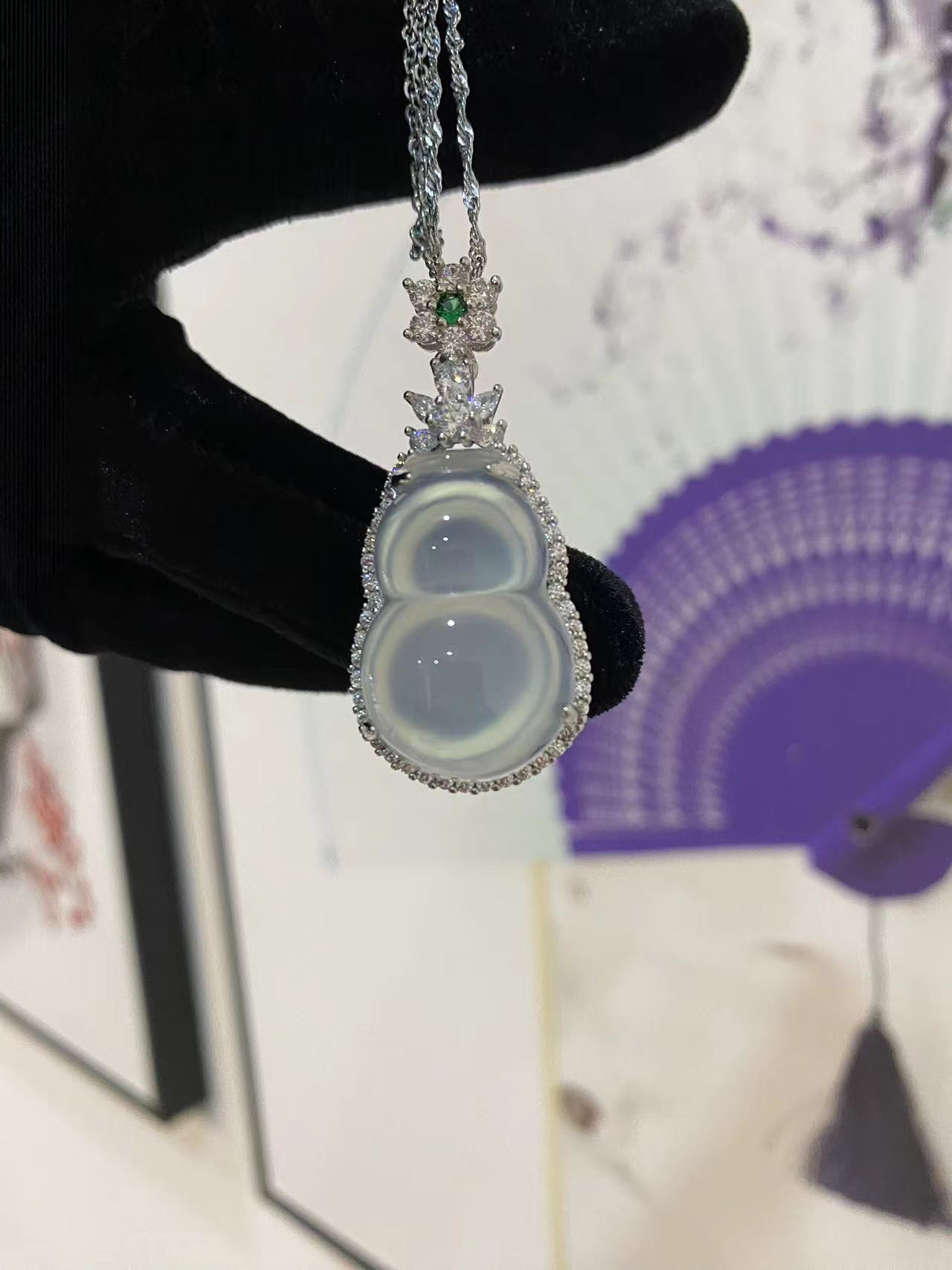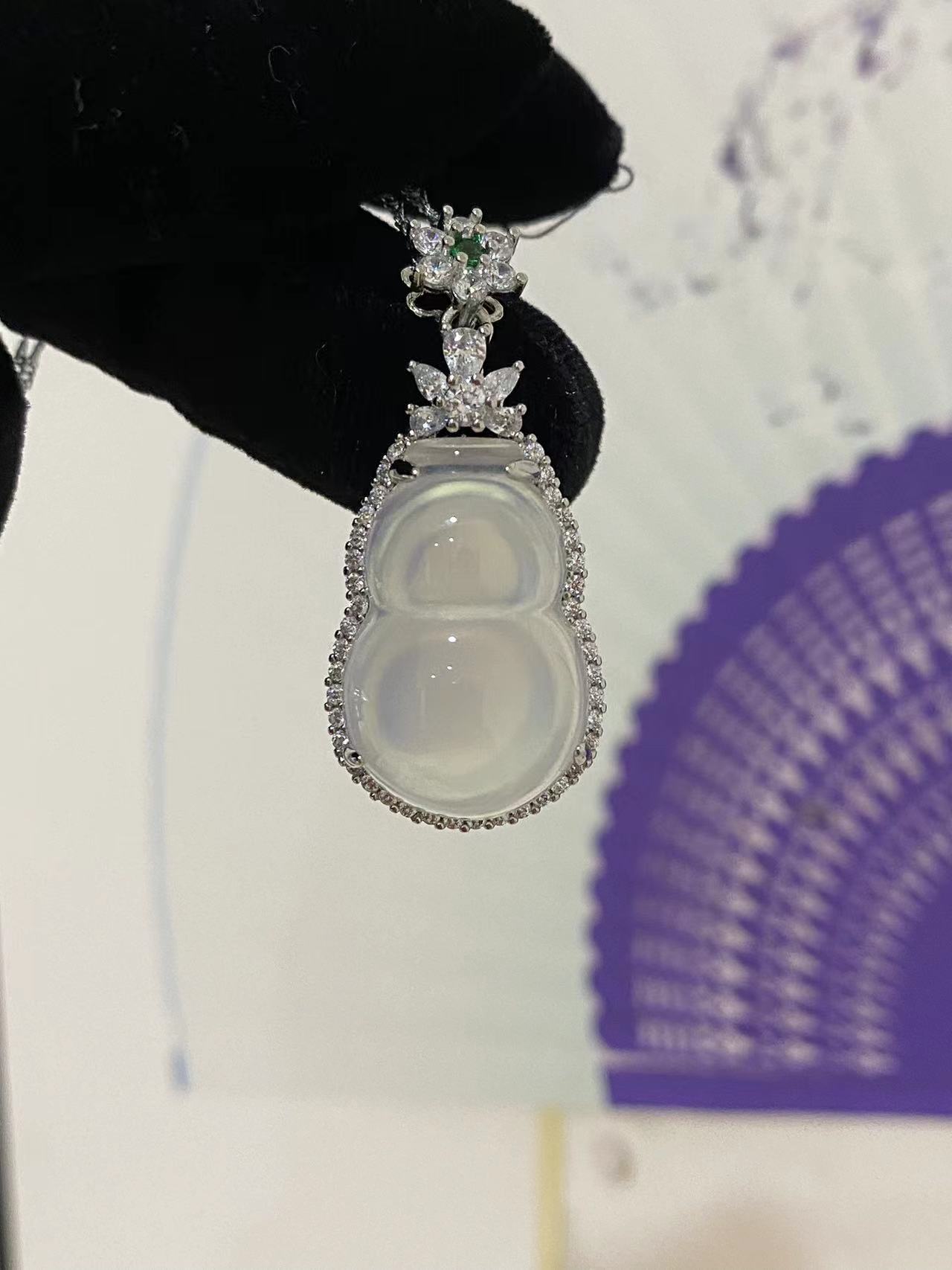 网红直播马达加斯加冰种玉髓葫芦吊坠925镀银镶嵌玛瑙福禄挂件批