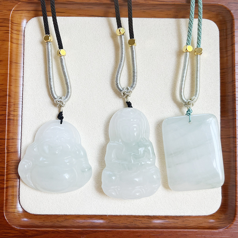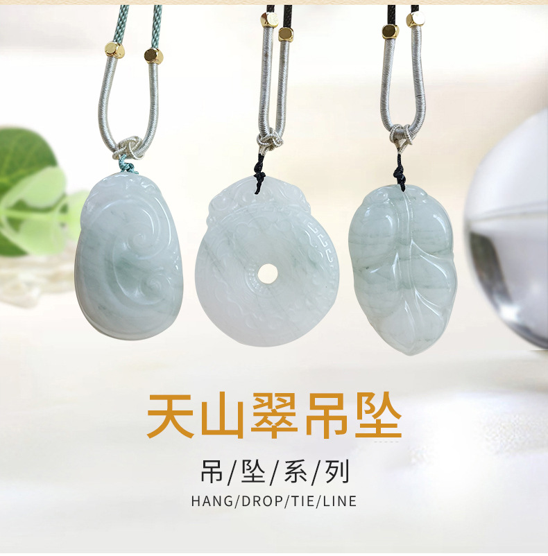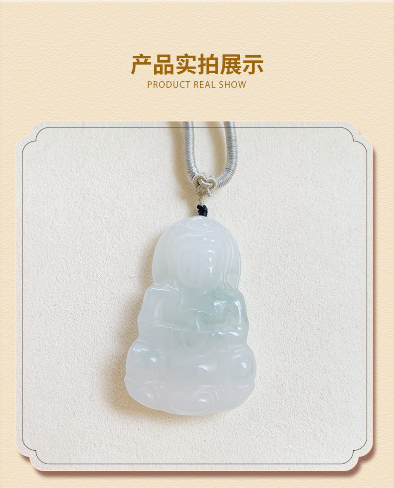 新疆天山翠佛公平安扣吊坠金丝玉观音挂件佘太翠白底飘翠花项坠