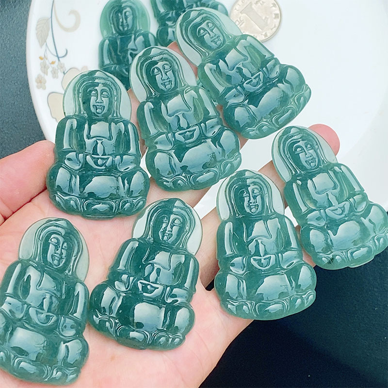 A货翡翠老坑冰油绿大观音吊坠 天然玉观音吊坠一手货源批发配证书