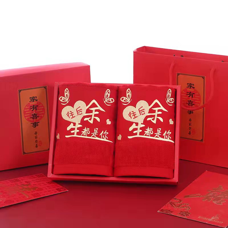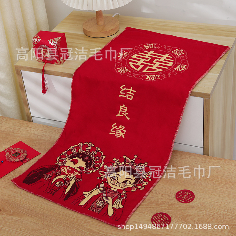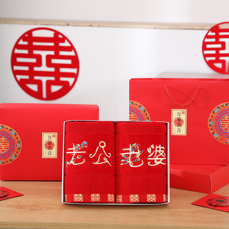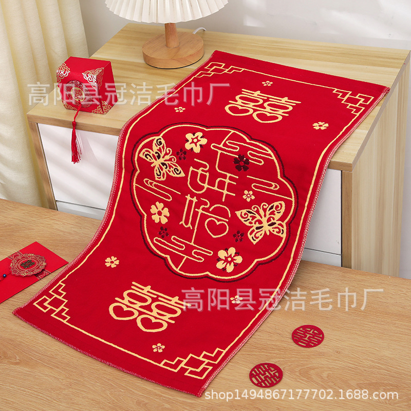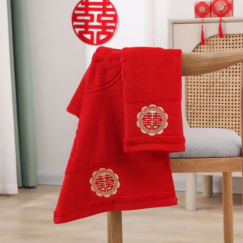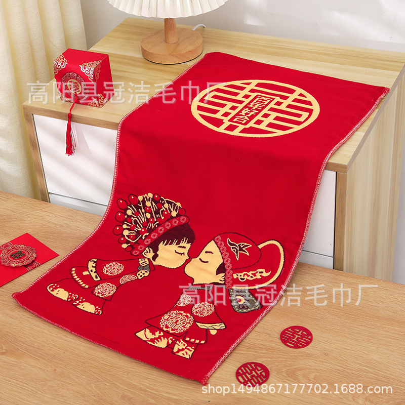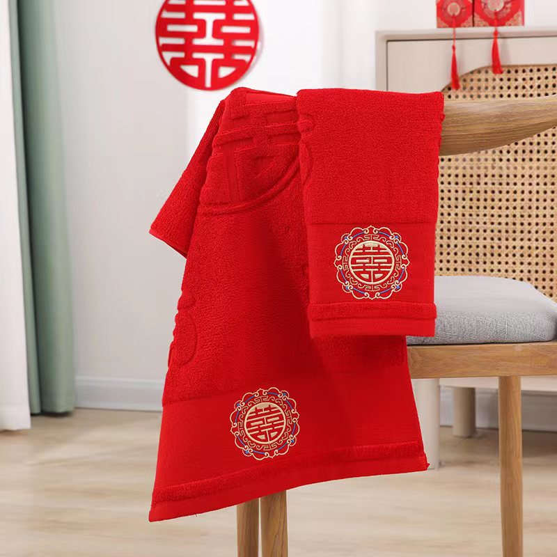 厂家批发结婚毛巾加厚刺绣大红喜字婚庆毛巾棉喜帕回礼logo刺绣