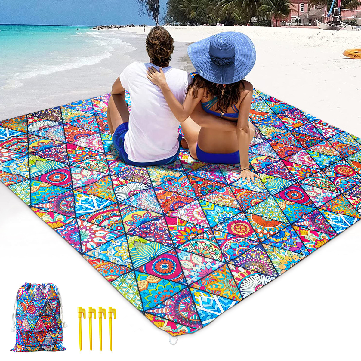 跨境户外野营尼龙防水便捷可折叠野餐垫防潮垫涤纶格子布沙滩垫