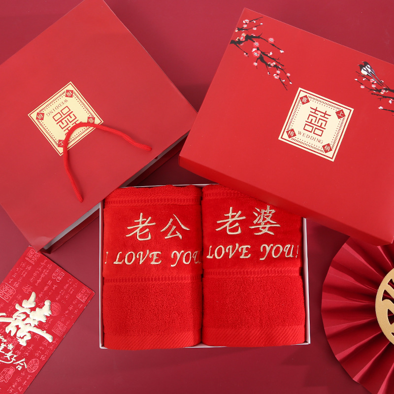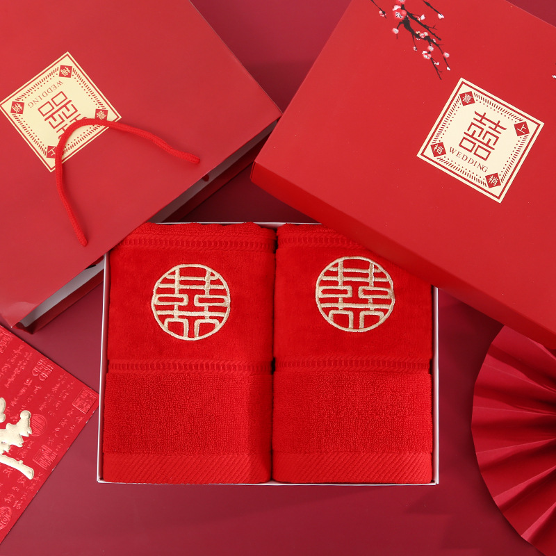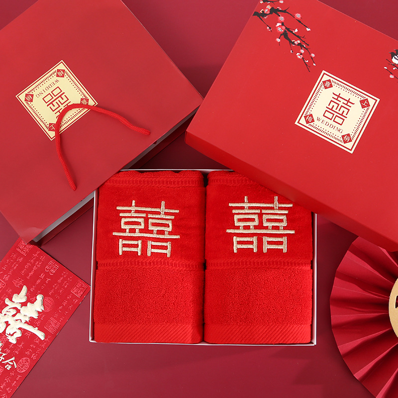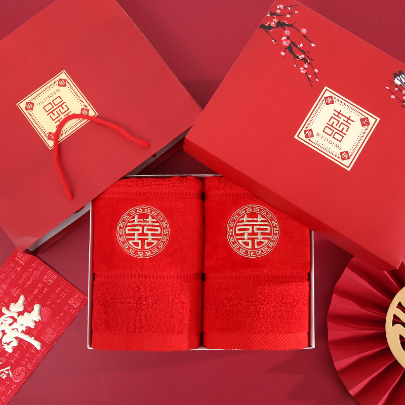 婚庆加厚毛巾结婚喜字毛巾回礼大红面巾喜字婚庆回礼毛巾logo刺绣