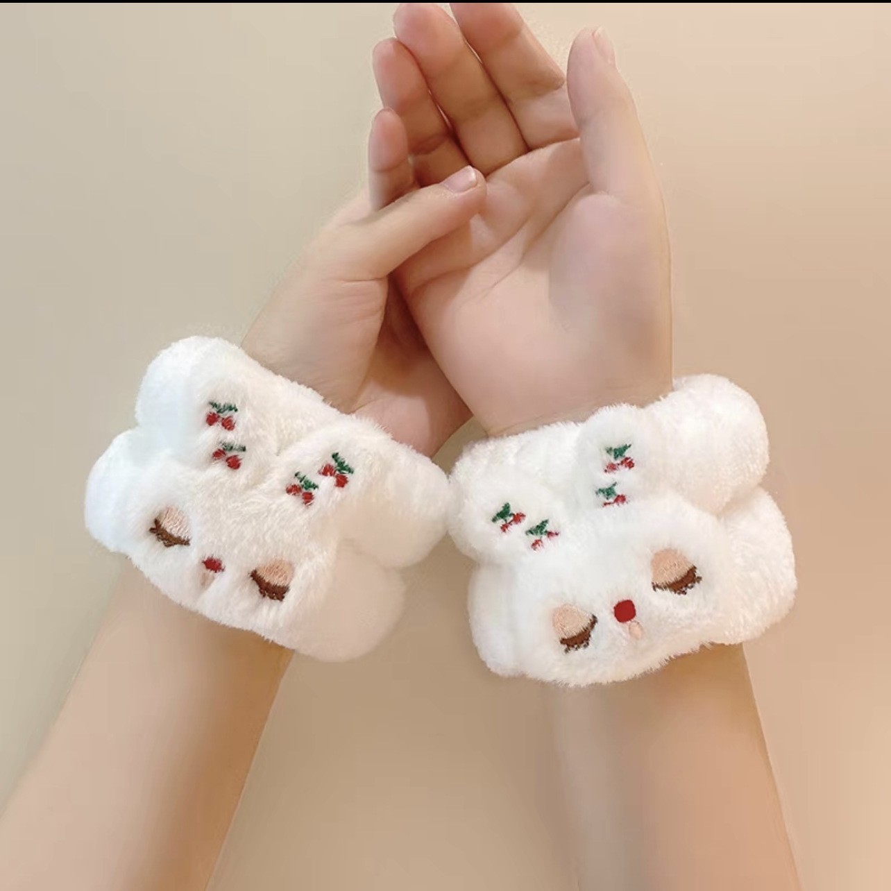 【2只装】新款简约毛绒兔子洗脸手腕带spa水疗防湿袖少女洗脸神器