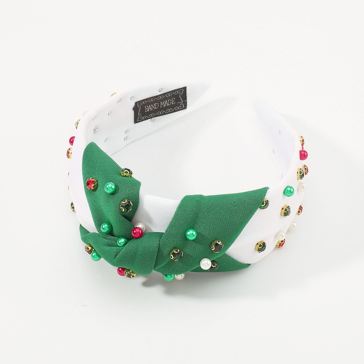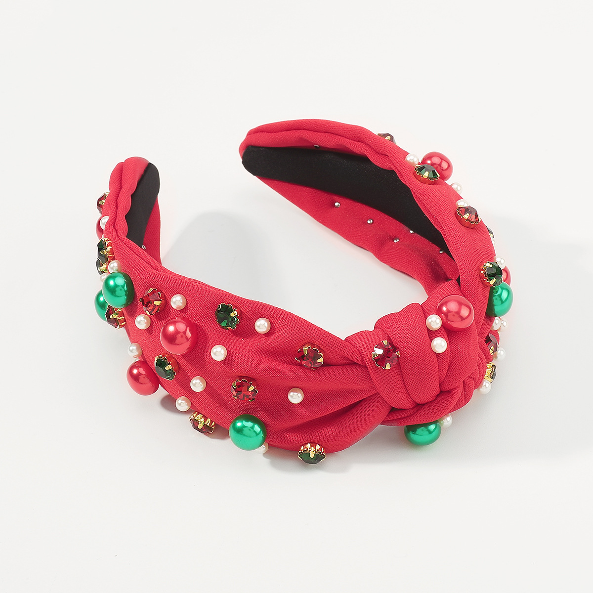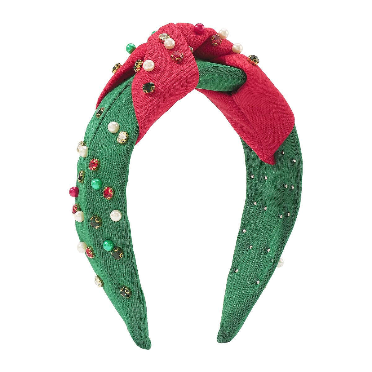 F6503欧美节日新品发饰时尚圣诞节发箍 红绿布艺大小钉珠镶钻头箍