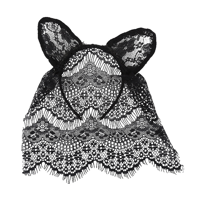 性感可爱黑色蕾丝带面纱成人猫兔耳朵发箍网红直播拍照装饰头饰