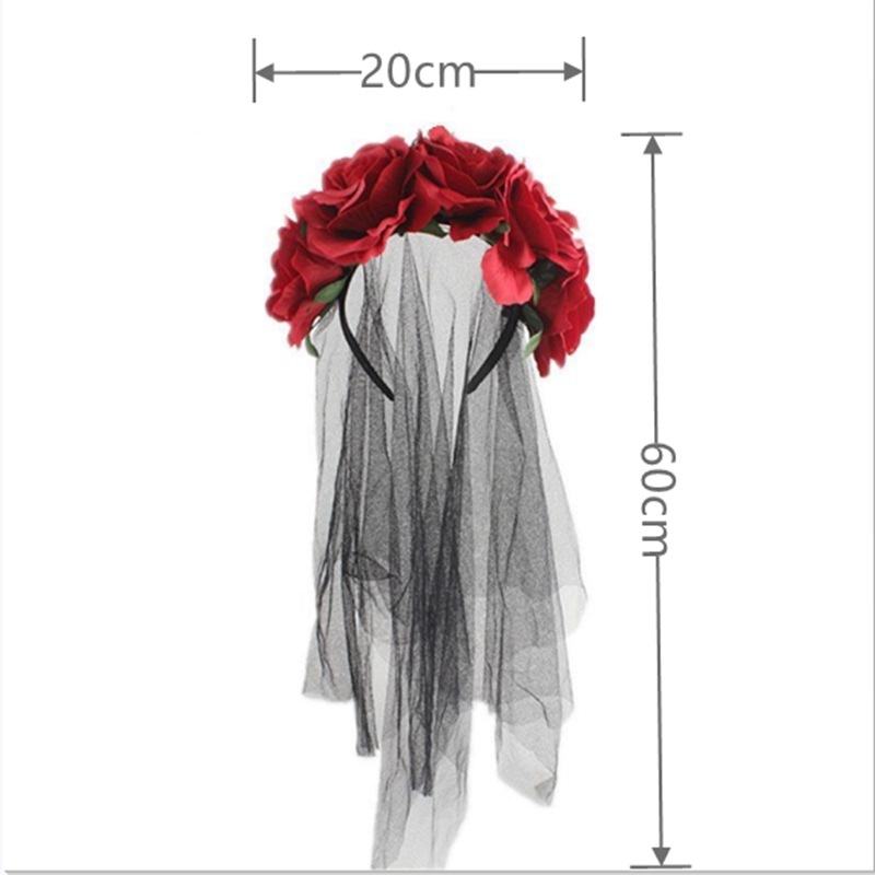 欧美万圣节派对发箍暗黑女巫装扮发饰红黑玫瑰花朵头纱亡灵节头扣