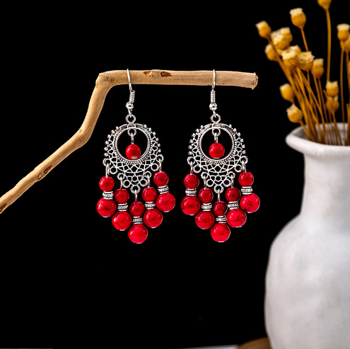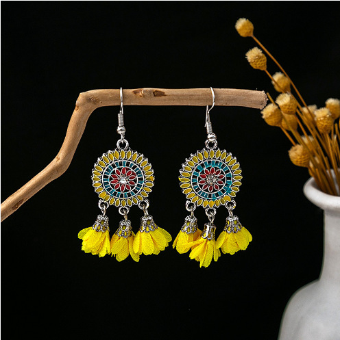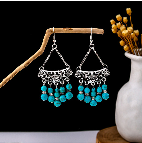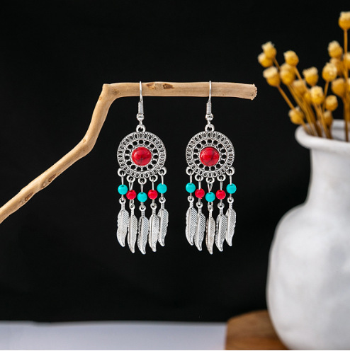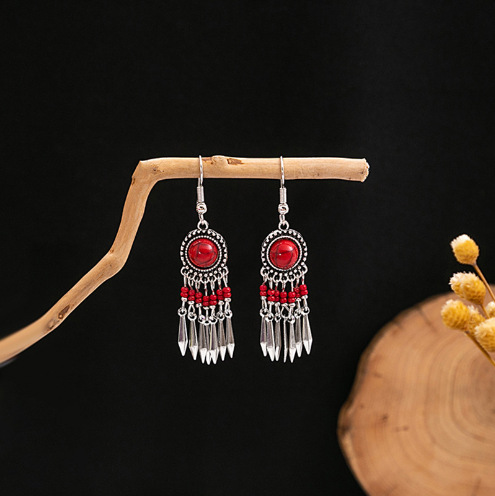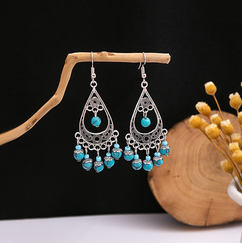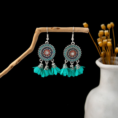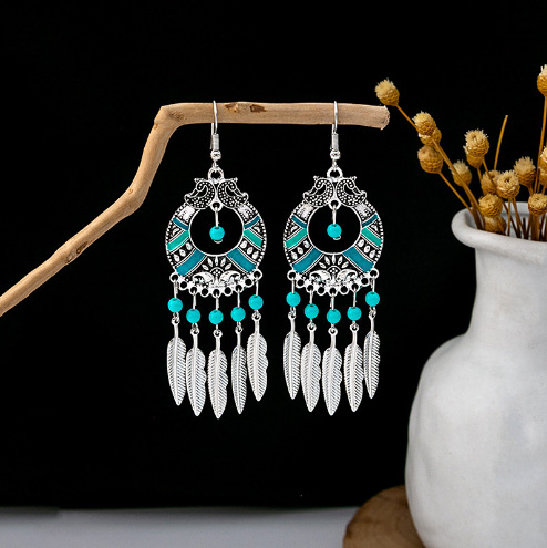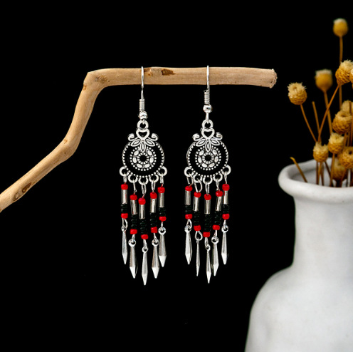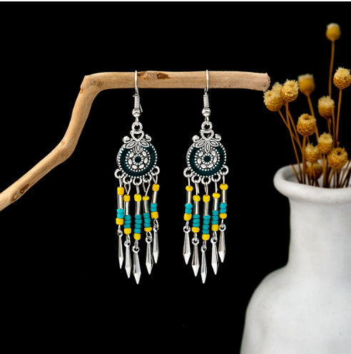 欧美波西米亚长款流苏金属耳坠民族风耳钉 时尚异族风情耳饰批发