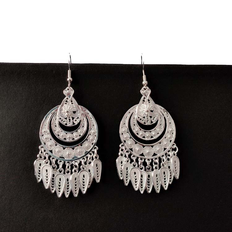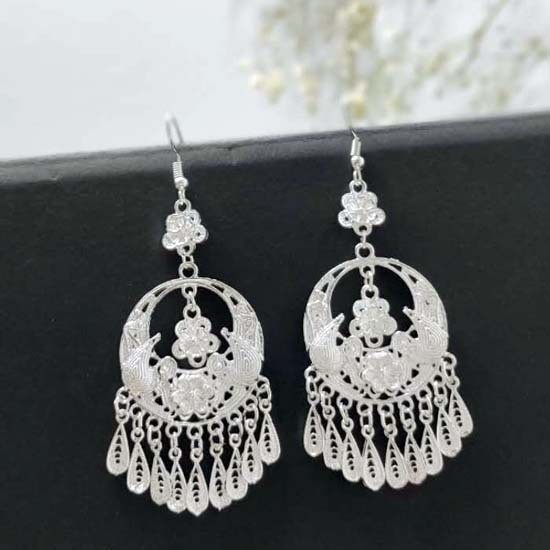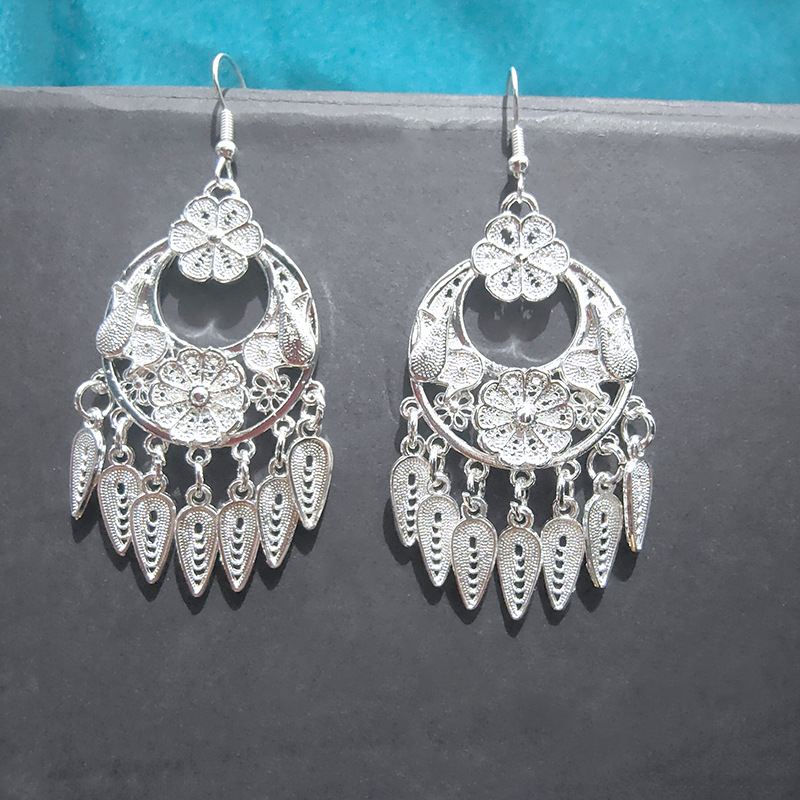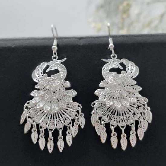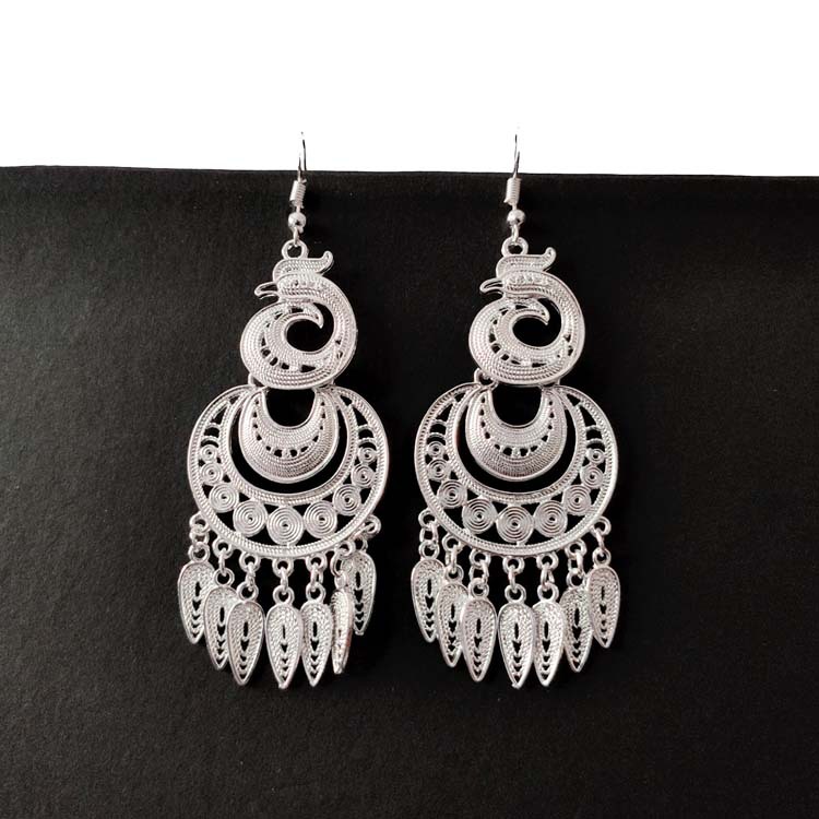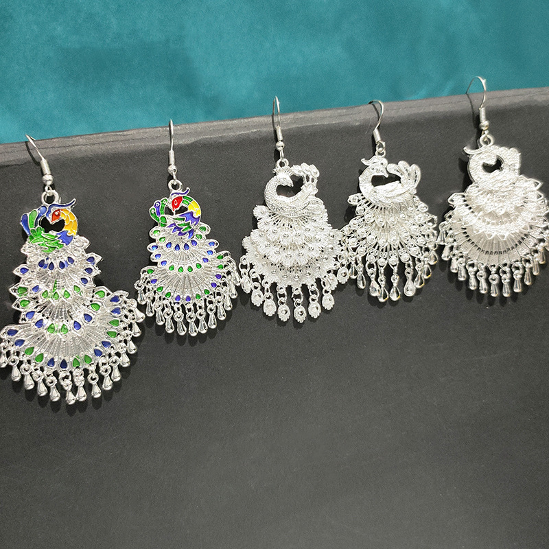 民族风耳环孔雀复古合金少数民族景区仿银大凉山云南耳坠汉服配饰