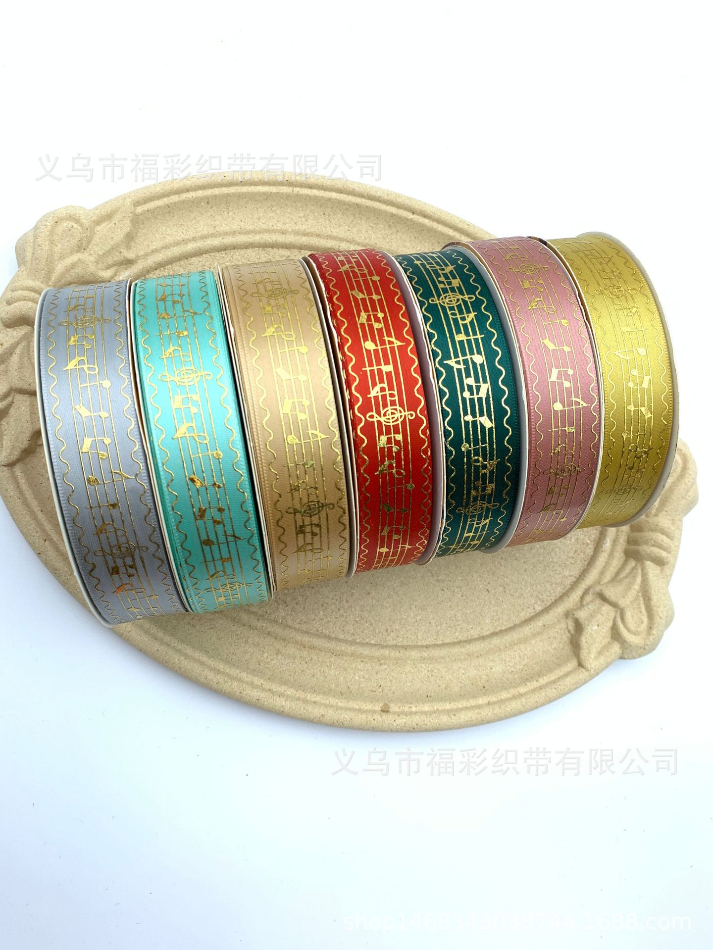 恩洪丝带 新款音符 手工DIY 镭射金丝带 厂家直供带花艺装饰织带