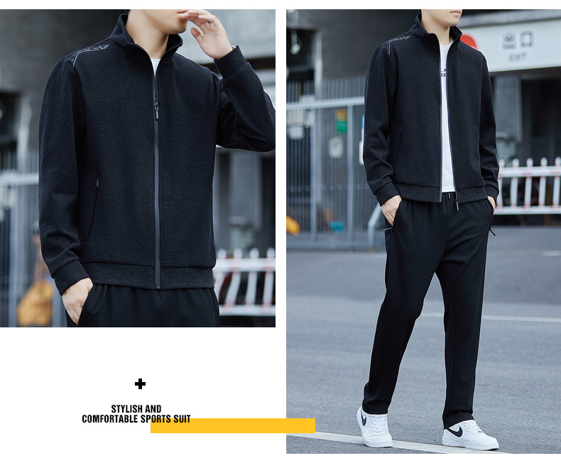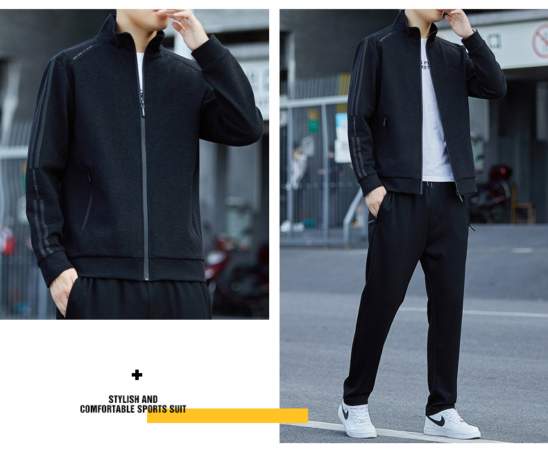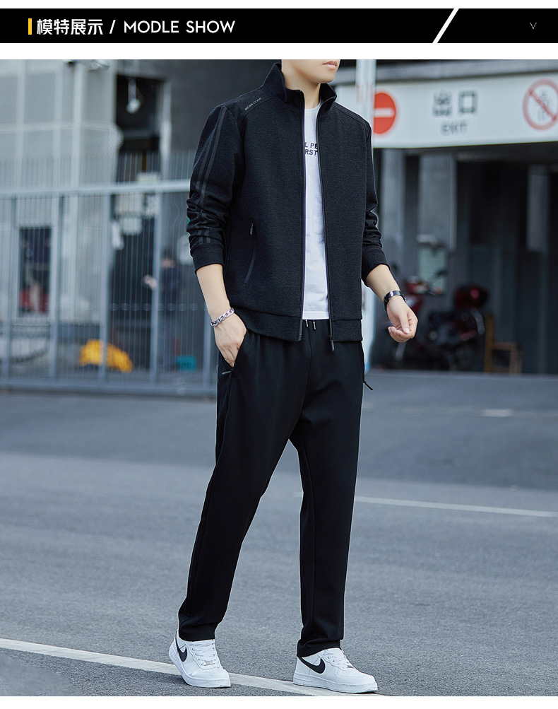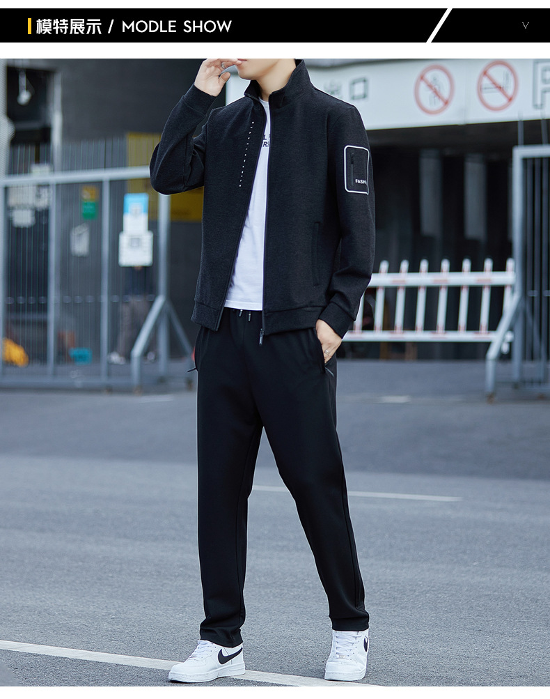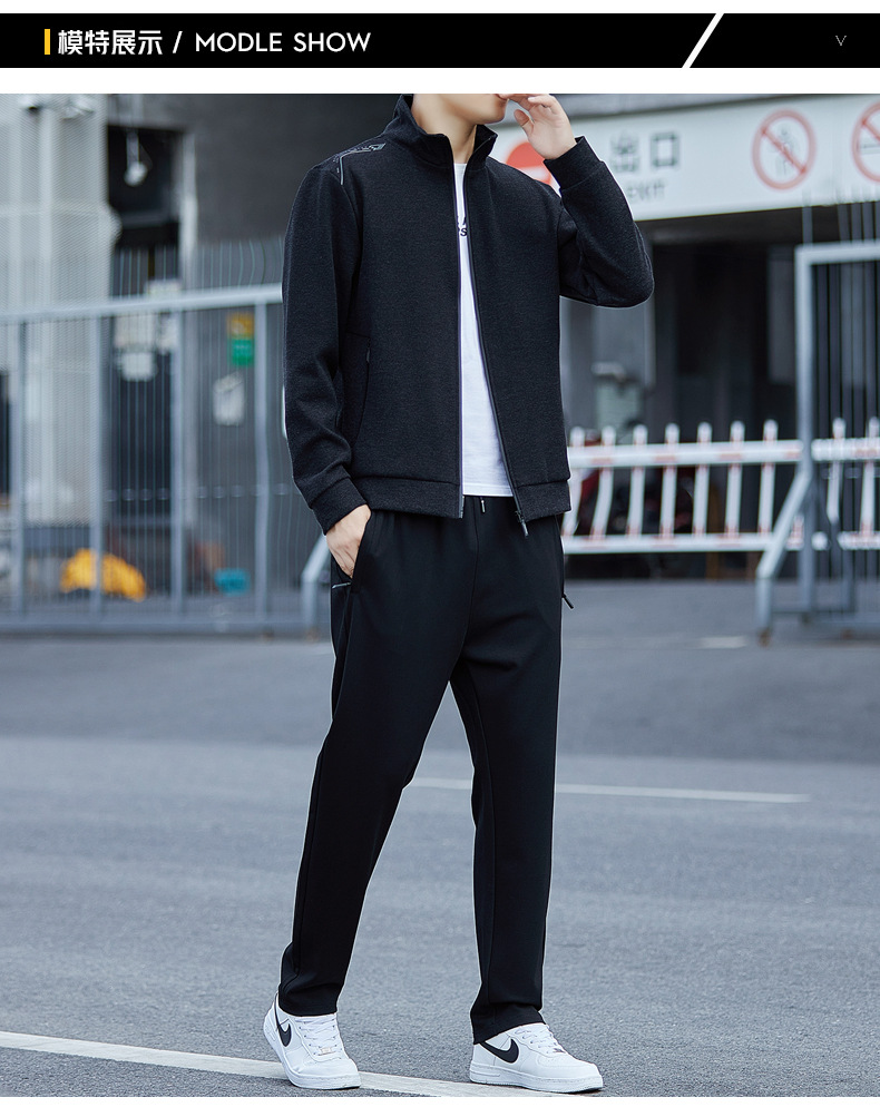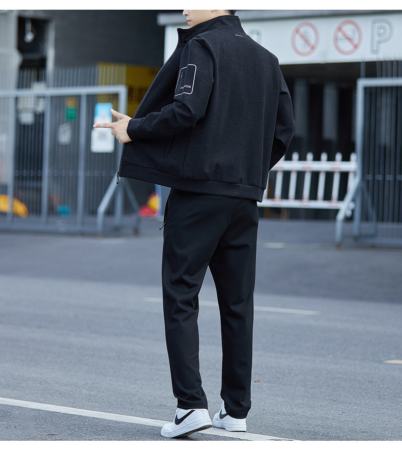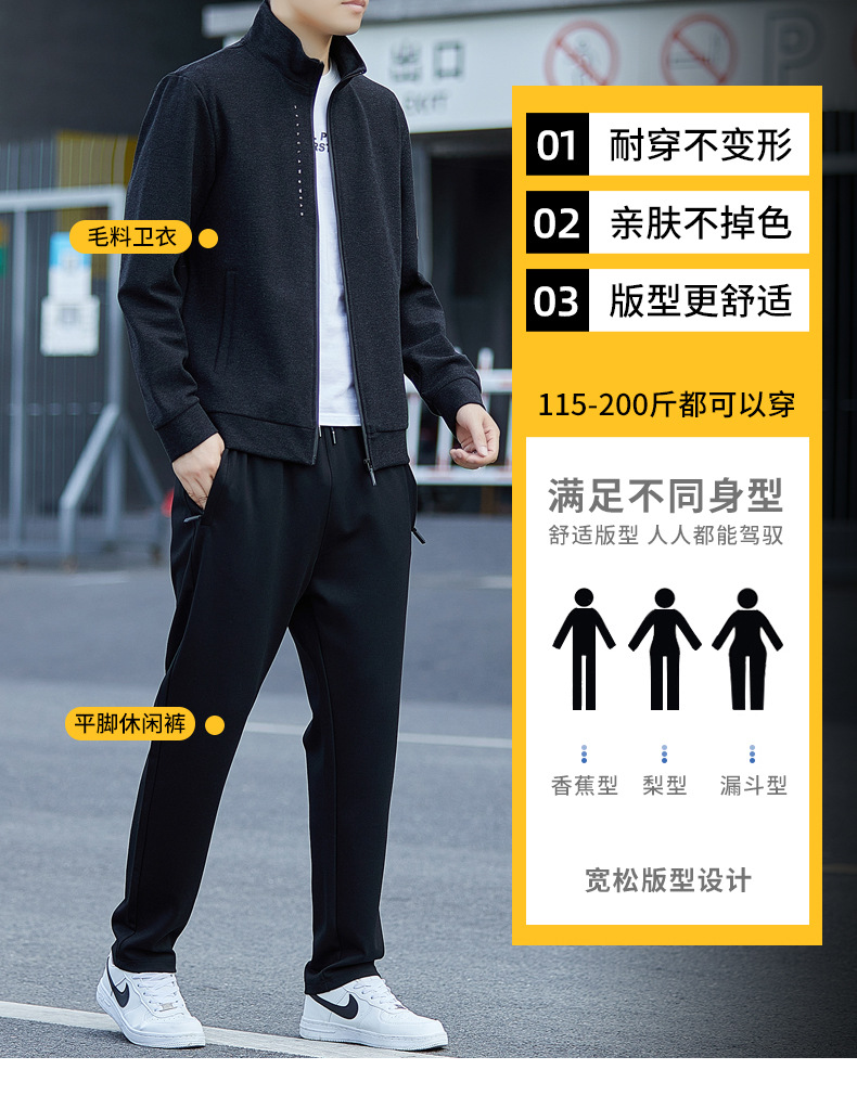 男士套装2023年秋季新款大码潮牌休闲运动男款立领卫衣长裤两件套