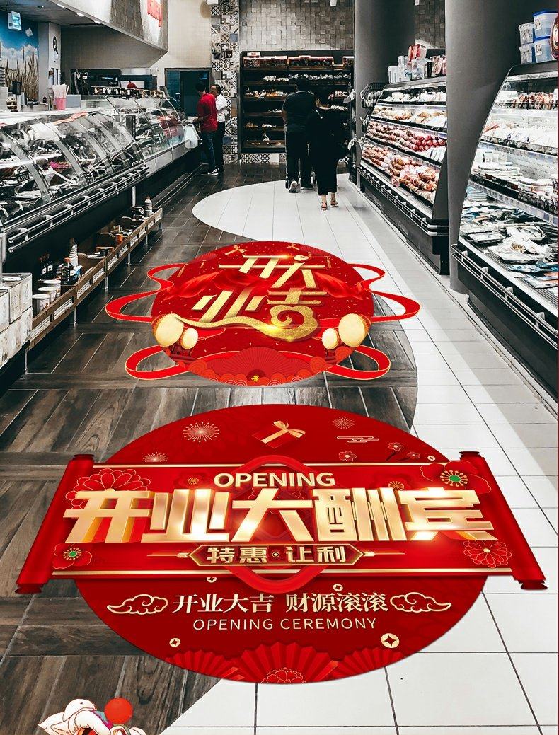开业大吉门贴店铺装饰广告海报氛围气氛布置贴纸盛大新店开业地贴