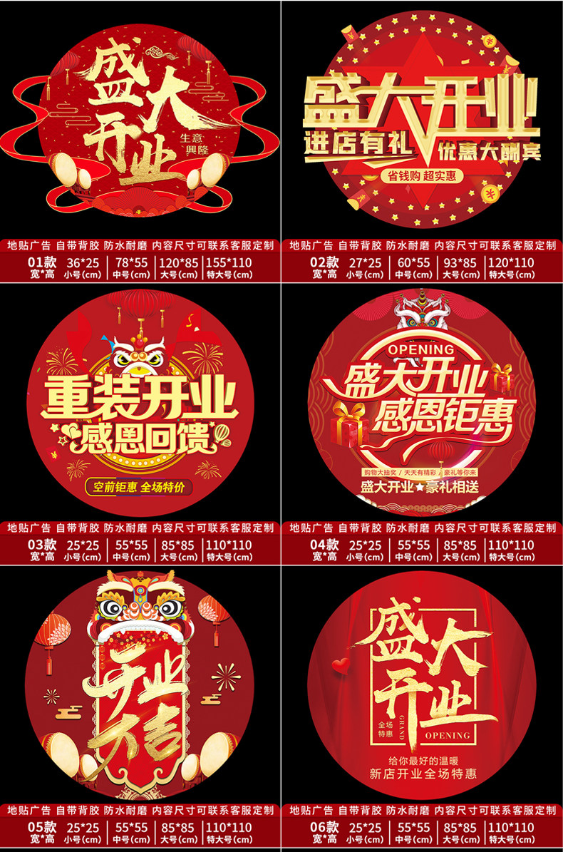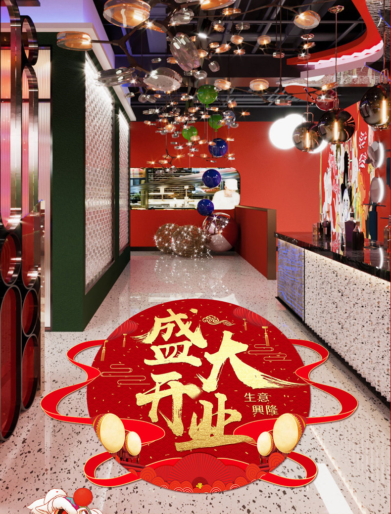 K6WY开业大吉地贴贴纸活动装饰盛大氛围布置广告海报门贴新店开业