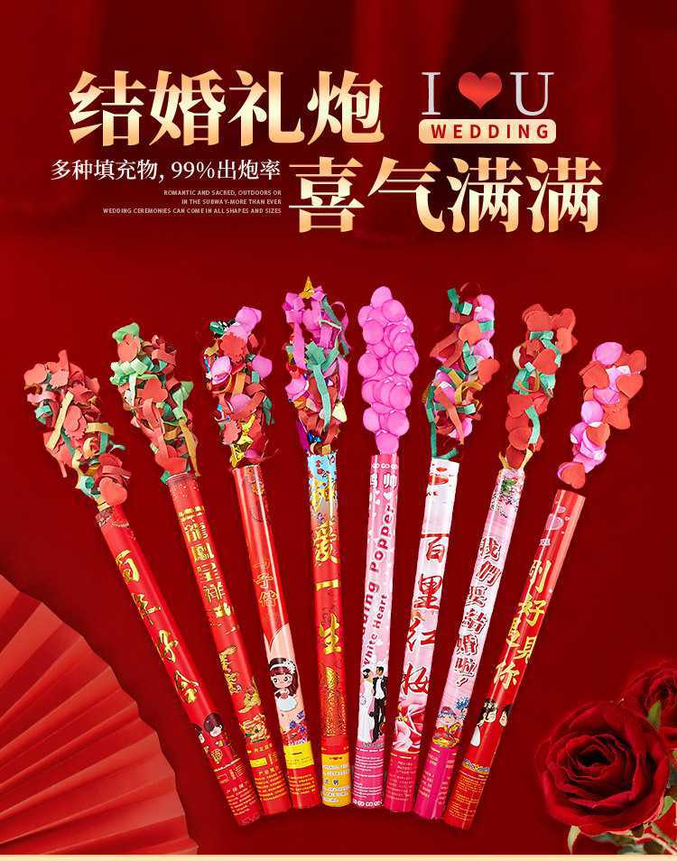 婚礼用品彩带礼花筒结婚手持婚庆开业花瓣礼花炮旋转开工礼炮批发