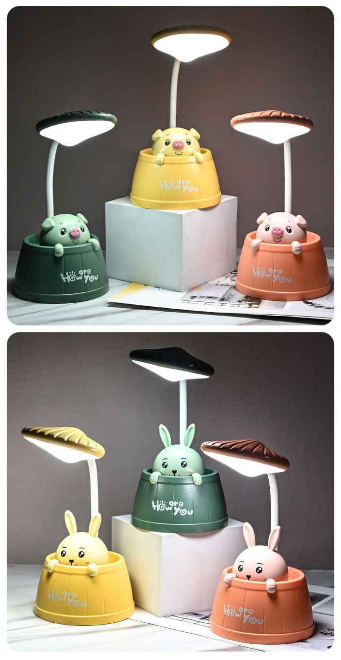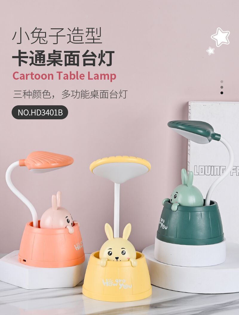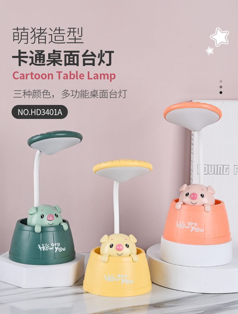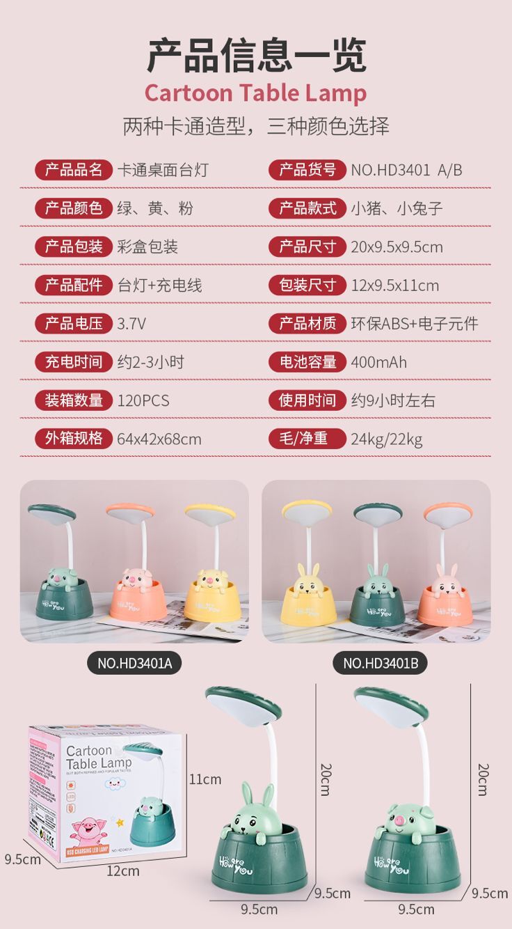 HD3401B小萌猪/木桶充电台灯笔筒USB卡通小兔创意收纳护眼小夜灯