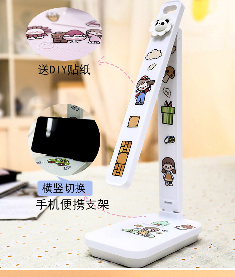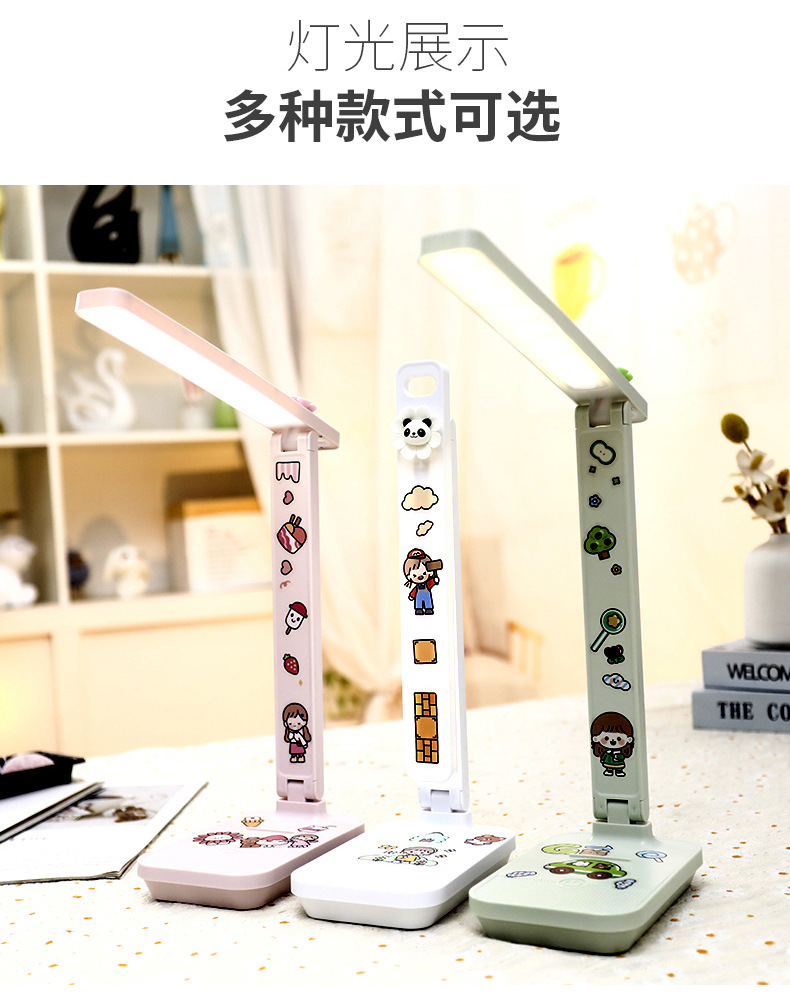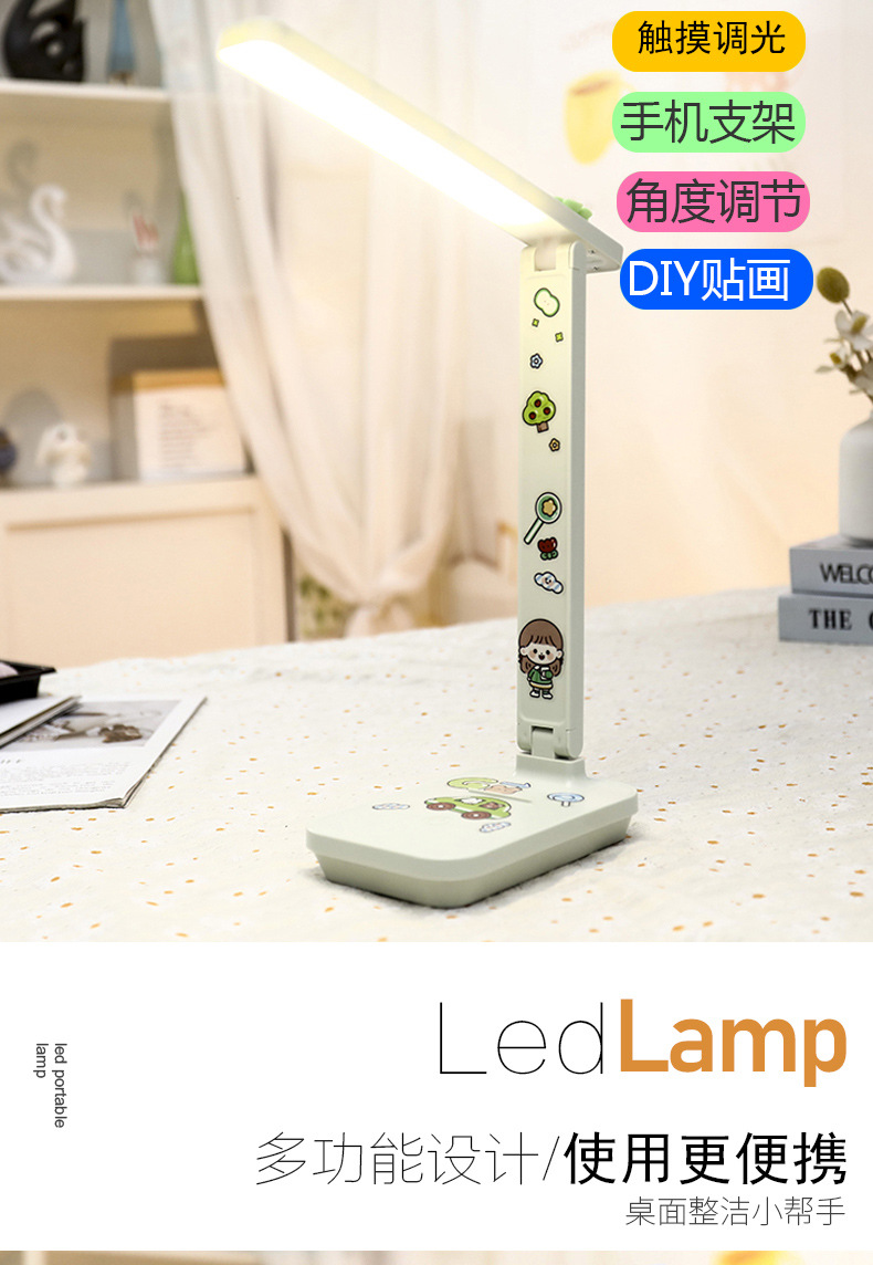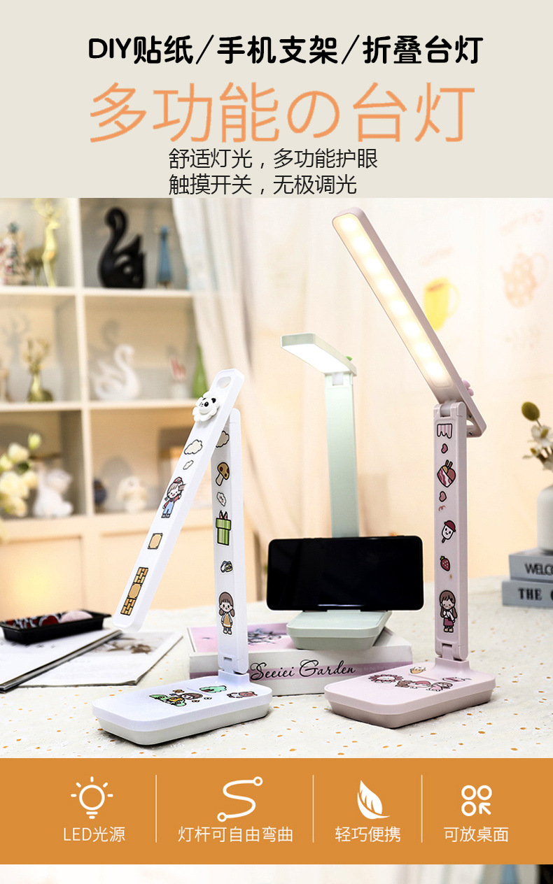 新款简约带贴纸三档触摸无极调光led护眼台灯学习阅读usb充电台灯