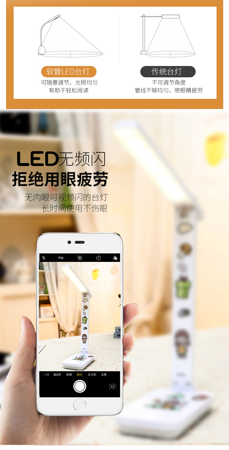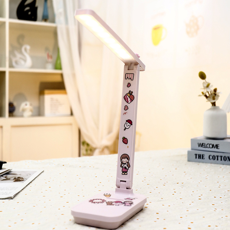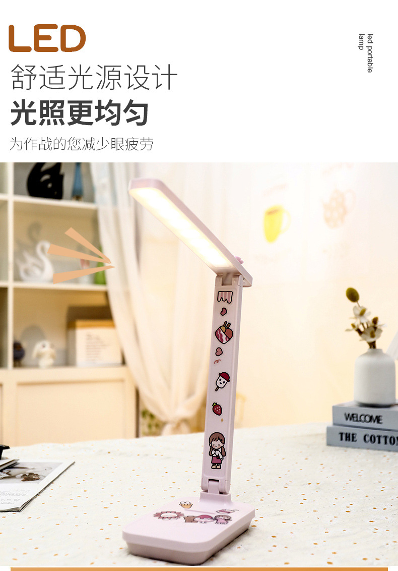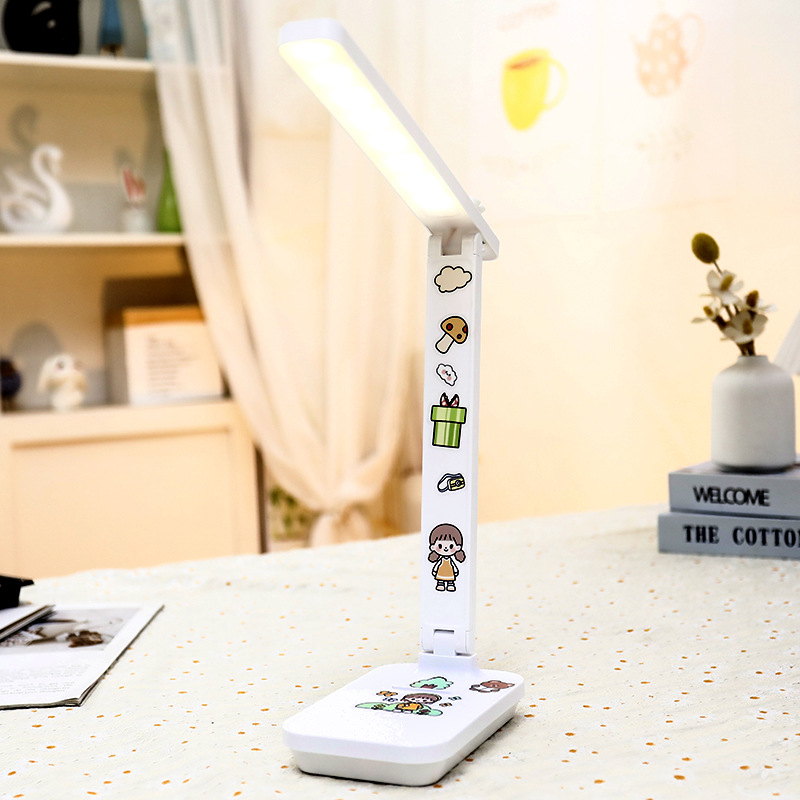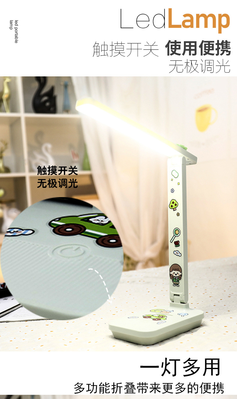 新款简约带贴纸三档触摸无极调光led护眼台灯学习阅读usb充电台灯
