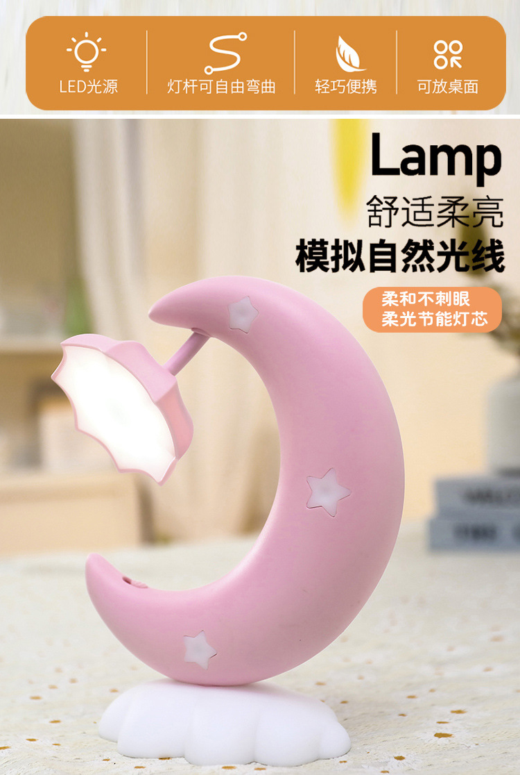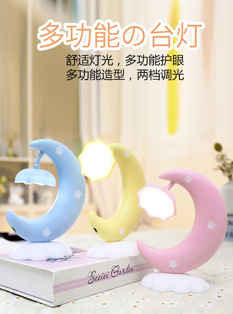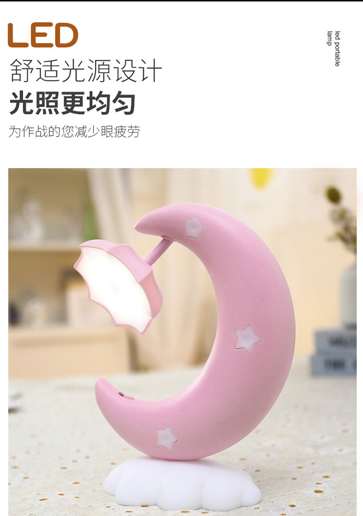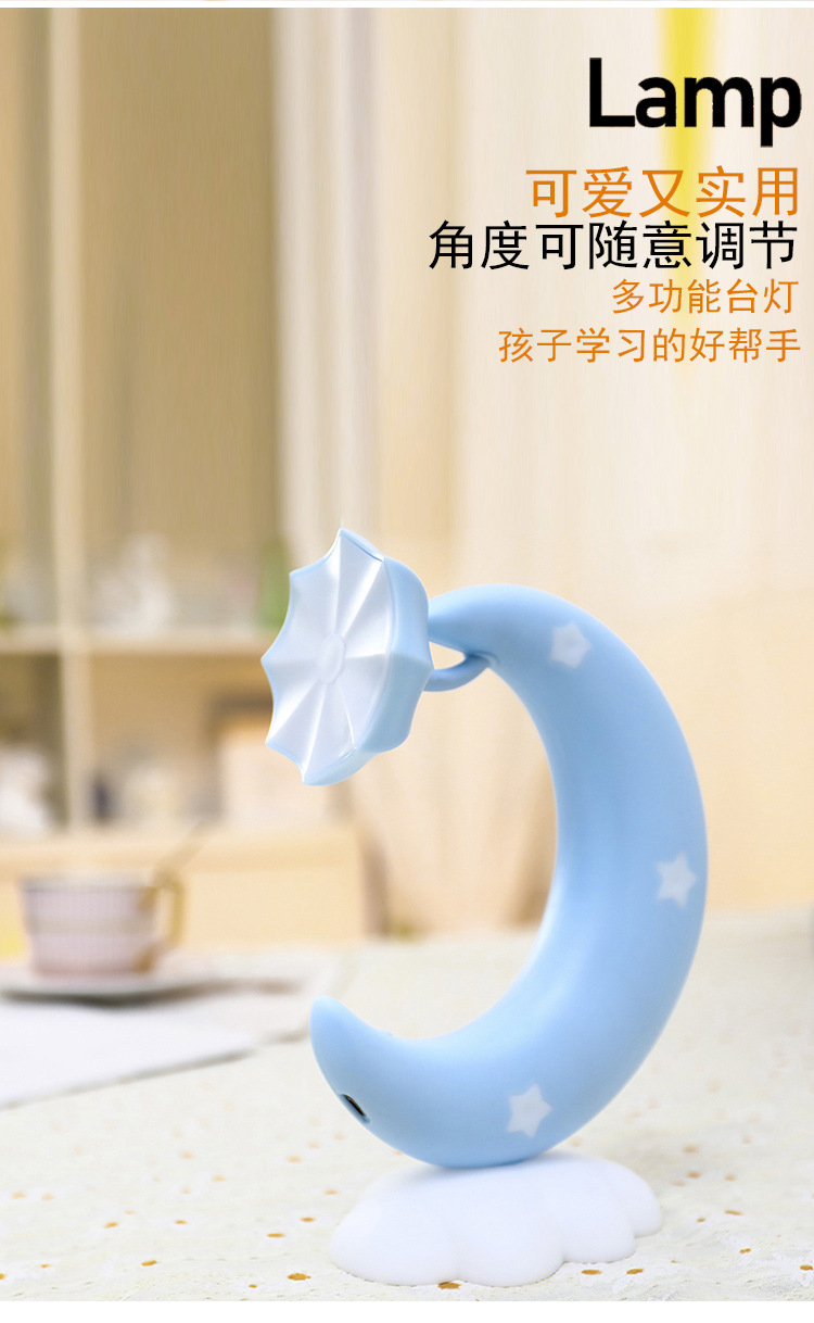 可爱月亮儿童桌面床头usb充电星星灯 护眼led阅读迷你礼品小夜灯
