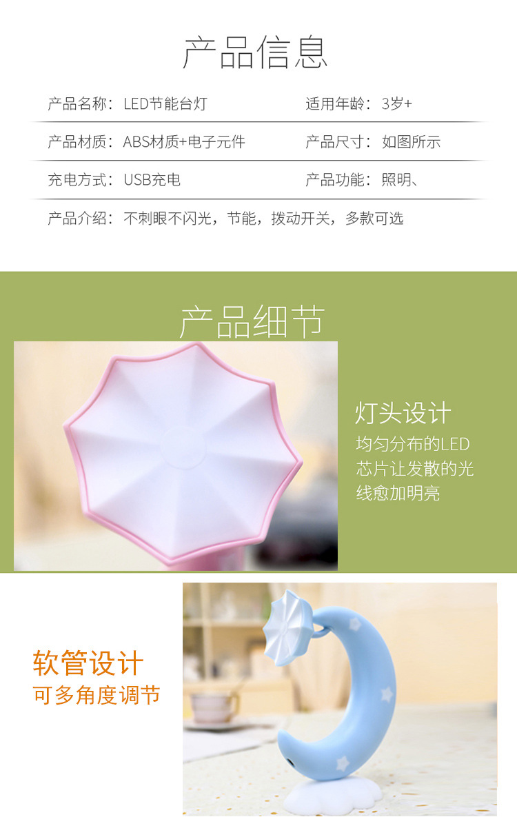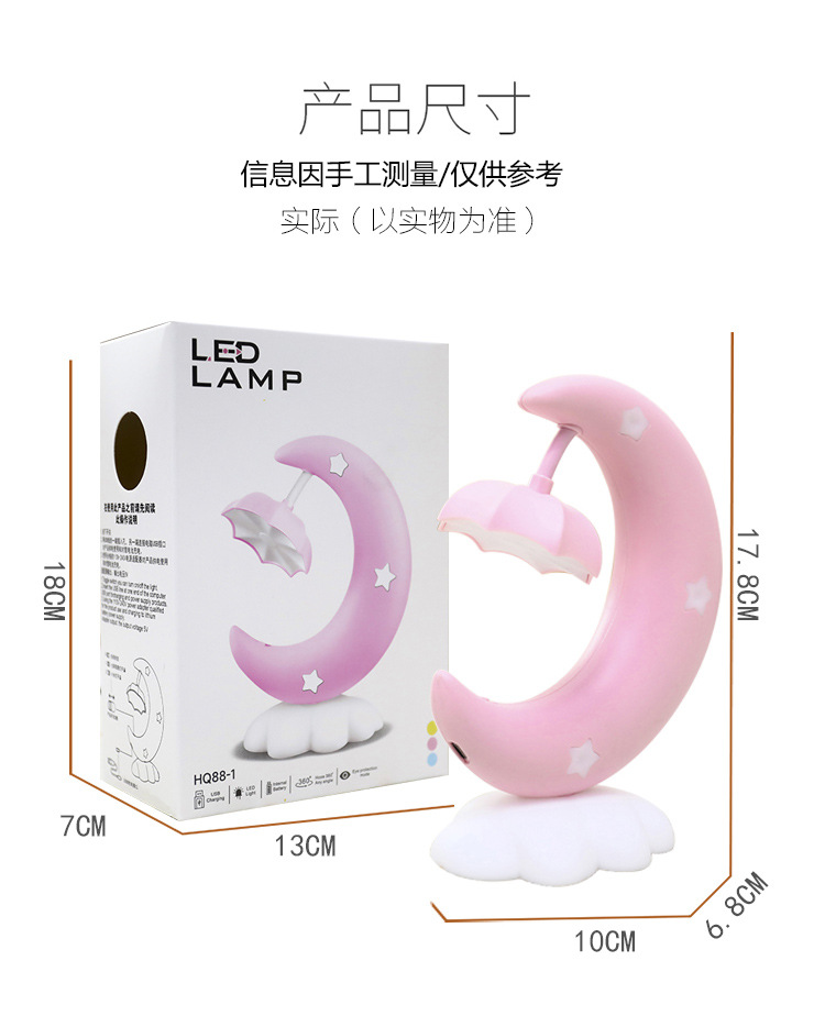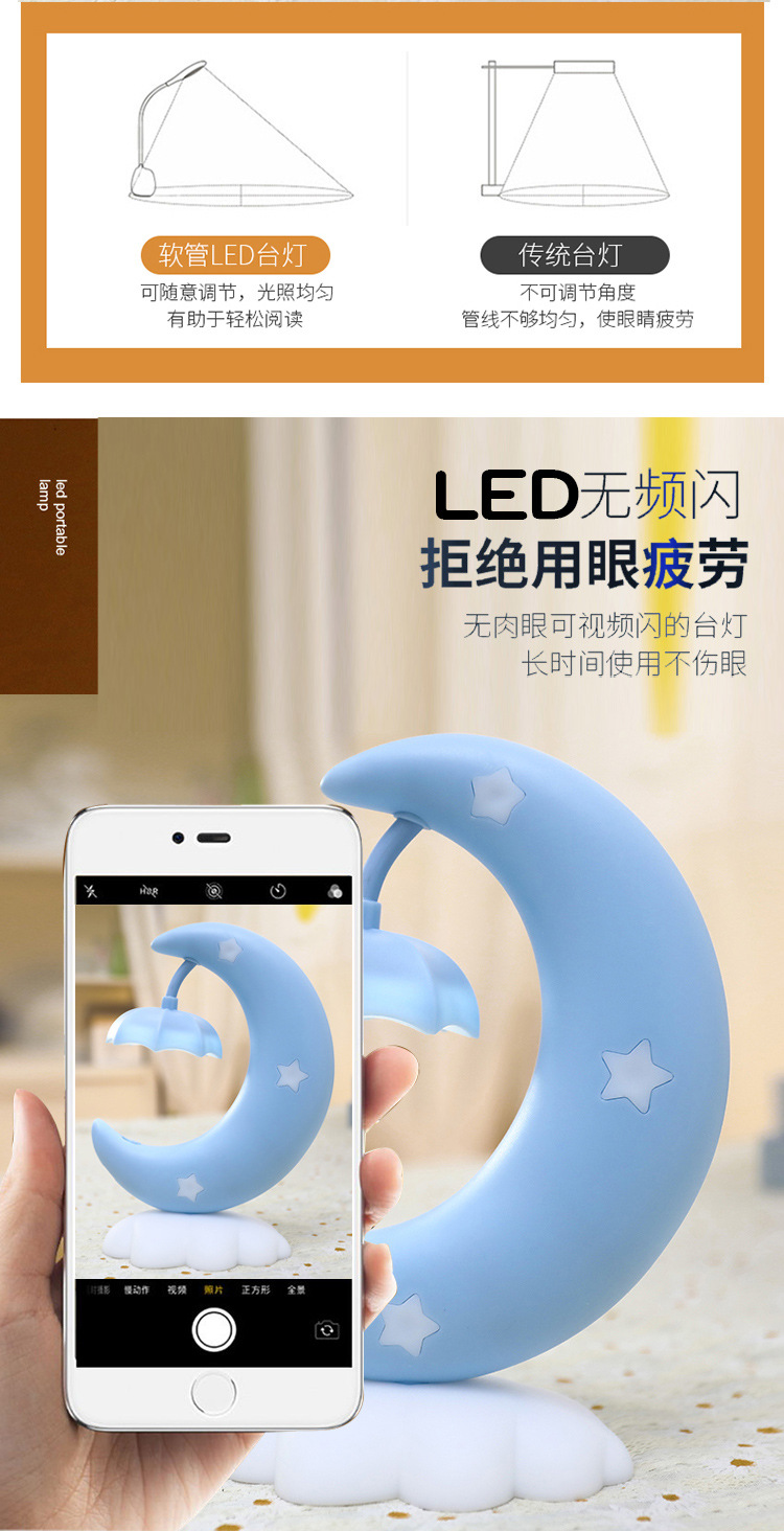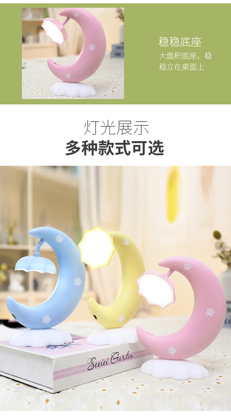 可爱月亮儿童桌面床头usb充电星星灯 护眼led阅读迷你礼品小夜灯