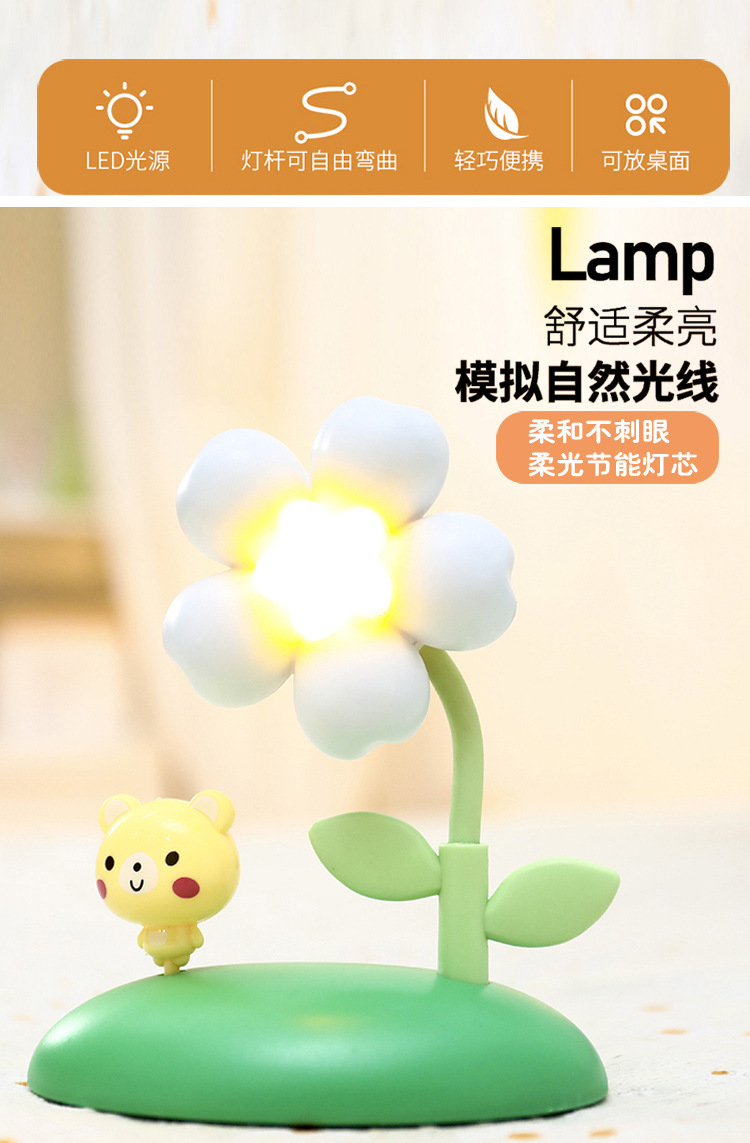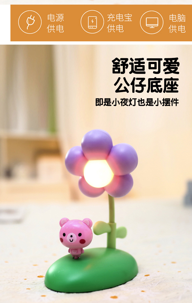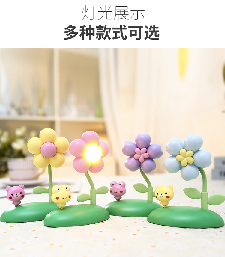 新款迷你小花朵可爱儿童卡通桌面摆件小夜灯 家用床头氛围暖光灯